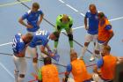 Už ve třetí minutě otevřeli slávisté skóre, když Roman Tatumirak připravil Dominikovi Slapničkovi, který se zotavil z nemoci, dobrou pozici k zakončení ze šesti metrů – 1:0. Navíc Tomáš Trávníček trefil v osmé minutě tyčku. Hosté do přestávky vývoj zápasu otočili, nejprve v 16. minutě se prosadil Radek Hrdý, těsně před koncem prvního poločasu pak přesně zakončil týmovou kombinaci Adam Čížek. Po změně stran Trávníček nádhernou ránou ze střední vzdálenosti trefil horní roh roudnické branky – 2:2. Slavia o dvě minuty později už vedla, když Tatumirak přesně dohrál situaci před brankou hostů přihrávkou na Ivana Levického – 3:2. Hosté zkoušeli během zápasu svojí silnou zbraň v podobě power-play, šest minut před koncem z jejich tlaku padla vyrovnávací branka, když do vlastní sítě nechtěným odrazem nasměroval míč Jakub Klaban. Oba týmy chtěly vyhrát, v závěru měl šanci Tatumirak, v posledních vteřinách se do nebezpečné situace dostali ještě hosté, brankář Naku ale byl připraven dvakrát skvěle zasáhnout. Napínavý zápas s celou řadou emotivních momentů tak skončil nerozhodně 3:3. Komentáře po zápase: Dominik Slapnička (Slavia B): "Byl to fyzicky náročný, intenzivní a vyhrocený zápas. Pro nás další dobrá zkušenost. Otočili jsme z 1:2 na 3:2, mrzí nás, že jsme nakonec nevyhráli. Inkasovali jsme tři branky kvůli naší nedostatečné koncentrovanosti. Anatoliiy nás dnes podržel výborným výkonem, dobré zákroky měl i v poslední minutě. Každý bod s takovým soupeřem počítá, ale jak jsem říkal, měli jsme jich dnes brát víc." SK Slavia Praha B – SK Roudnice n.Labem 3:3 (1:2) Branky: 3. Slapnička (Tatumirak), 31. Trávníček (Slapnička), 33. Levický (Tatumirak) – 16. Hrdý (Pokorný), 20. A. (Pokorný), 34. Klaban (vla.) SK Slavia Praha B: Naku (Brejcha) – Jakub Klaban, Derevianko, Motyčka, Kraus, Slapnička, Ondřej Holub, Levický, Trávníček, Tatumirak, Jákl. Trenér: Jan Homola SK Roudnice n. Labem: Václav Čížek (Bouška) – Adam Čížek, Hakl, Hrdý, Jurčík, Macháček, Mešič, Možný, Pokorný, Džudža. Trenér: Radek Hrdý. |