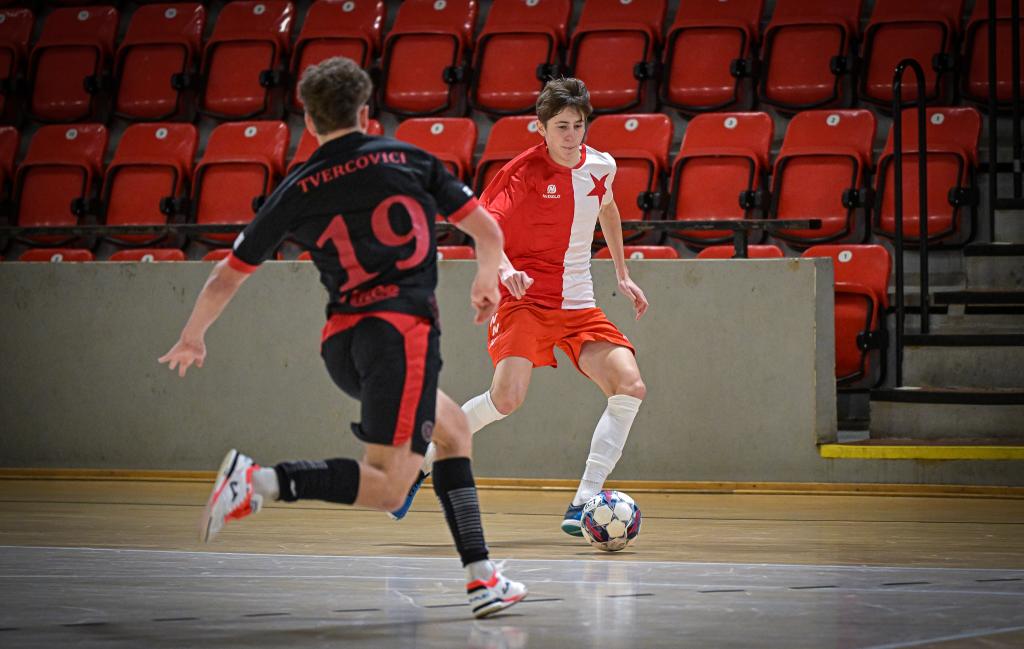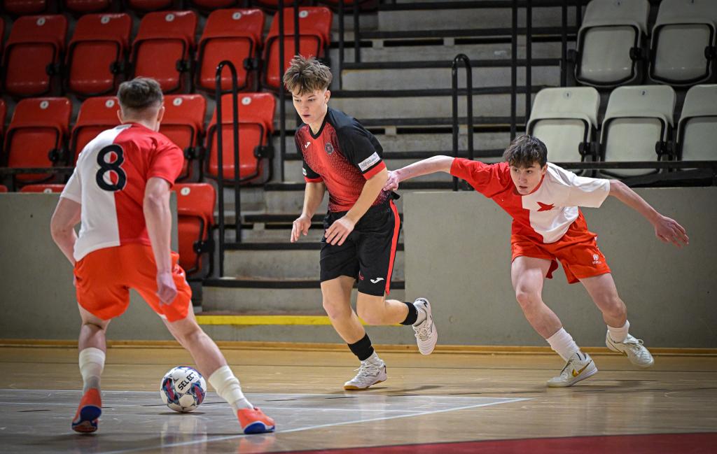 Juniorka v semifinále postoupila přes FTZS Liberec až na penaltový rozstřel. Slavia dotahovala skóre, neproměnila několik vyložených šancí a soupeř svoji efektivitou udělal zápas velice dramatickým. Někteří slávisté také ztratili koncentraci na hru a zaměřili svoji pozornost na výroky rozhodčích. Svojí nedisciplinovaností, byť některá rozhodnutí vyvolávala oprávněně emoce, riskovali úspěch celosezonní práce nejenom své, ale také realizačního týmu a celého klubu. Naštěstí v pravou chvíli dvěma góly zastavil negativní scénář kapitán Jakub Klaban. Liberec dostal zápas do penaltového rozstřelu díky proměnéné penaltě v závěru zápasu. V samotném rozstřelu ale prokázali lepší nervy sešívaní a postoupili. Dramatické, takticky vedené finále s Interobalem Plzeň nakonec rozhodl jediný gól, který vsítil z 10m přímého kopu Jakub Klaban. Spolu s ním byl do ALL STAR týmu turnaje nominován také Tomáš Zíta. Komentáře po turnaji: Jakub Klaban (kapitán Slavie U19): „Je to mix emocí, na turnaj jsem se strašně dlouho těšil a mám obrovskou radost z toho, že jsme to zvládli a dokázali jsme se dostat do celostátního finále. Závěr semifinále byl hodně dramatický, přiznám se, že už jsem byl ve stresu, že to nezvládneme. Po skončení zápasu byli kluci hodně naštvaní, snažil jsem se tým uklidnit, že teď na to musíme zapomenout a soustředit se na penalty. Ve finále nás čeká Chrudim, která nás vloni porazila o sedm branek, stále to těžce neseme a chceme jim to vrátit.“ David Ploc (trenér Slavie U19): „Bylo to psychicky náročné, už před turnajem jsme věděli, že budeme považovani za favority, ale nebude to snadné. Semifinále se nám příliš nepodařilo, samotný postup byl už na tenkém vlásku. O to větší je euforie z postupu a z toho, že jsme ve finále Plzeň dokázali potřetí porazit a že nám ani jednou nevstřelili branku.“ SK Slavia Praha – FTZS Liberec 4:4 (1:2) penalty 4:3, semifinále Final Eight západ Branky: 7. Kuta (Qualizza), 18. Conway (Kuta), 19. Stand (Kuta), 30. Tvercovici (pen.) – 8. Klaban (Kočovský), 9. Zíta (Schütz), 29. Klaban (10 m kop), 30. Klaban (Zíta) Penaltový rozstřel: proměnili Klaban, Rozman, Schütz, Zíta – Tvercovici, Stand, Lubor. Neproměnili: Kuta, Stoyka (oba Liberec) SK Slavia Praha - Barták (Kozák) – Jakub Klaban, Trávníček, Zíta, Schütz, Kočovský, Motyčka, Rozman, Holub, Kazbekov Amirlan, Ondřej Holub, Rajšner, Razesberger, Formáček. Trenér: David Ploc FTZS Liberec: Václavík (Kučera) – Conway, Kurc, Sedlák, Vrábel, Severa, Stand, Tvercovici, Stoyka, Hataš, Qualizza, Kuta, Lubor. Trenér: Filip Razák SK Slavia Praha – SK Interobal Plzeň 1:0 (1:0), finále Final Eight západ Branka: 13. Klaban (10m kop) SK Slavia Praha: Barták (Kozák) – Jakub Klaban, Trávníček, Zíta, Schütz, Kočovský, Motyčka, Rozman, Holub, Kazbekov Amirlan, Ondřej Holub, Rajšner, Razesberger, Formáček. SK Interobal Plzeň: Vicenda – Lemon, Pašek, Votípka, Popule, Rožánek Lukáš, Rožánek Matyáš, Jiřinec, Kolesa, Holý, Batista, Pečenka, Otec, Mottl. Trenér: Adam Forman |