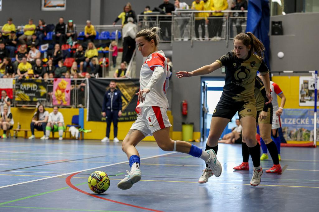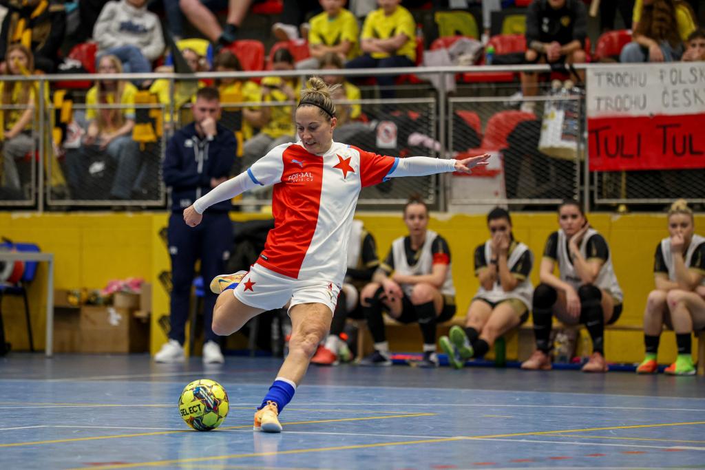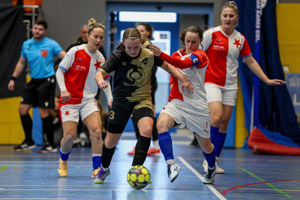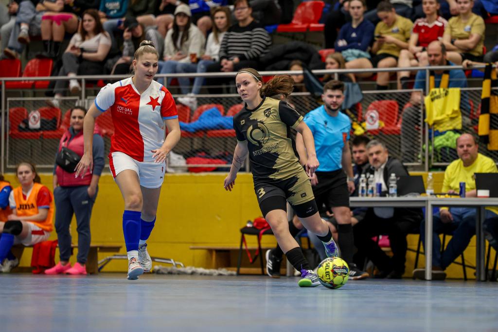 ![]() Futsalistky Slavie získaly na nedělním Final Four v pražských Kbelích třetí místo! Po prohře 1:5 v semifinále s Rapidem Ústí nad Labem v zápase o bronz třikrát dotáhly náskok Interobalu Plzeň a nakonec v závěru Petra Divišová rozhodla o vítězství 4:3. Alice Boučková, která vstřelila v zápase s Plzní dvě branky, byla nominována do All Star teamu turnaje. Všem hráčkám a realizačnímu týmu – Hedvice Kracmanové a Vratislavu Kracmanovi - srdečně blahopřejeme! Komentář po turnaji: Petra Divišová (Slavia): „Za třetí místo jsme šťastné, máme z něj velkou radost. Věděly jsme, z jakého postavení v tabulce jsme do Final Four šly. Pro nás už byl úspěch skončit mezi čtyřmi nejlepšími. To, že bereme bronz je nadstandardní úspěch. Můj rozhodující gól? Nebyla to zrovna povedená střela, ale na to se historie ptát nebude, hlavně, že to tam spadlo! Chtěla bych na dálku poděkovat Vráťovi Kracmanovi, je škoda, že si to tady nemohl užít s námi, veškeré díky za to, že medaili máme patří jemu a Hedvice, kteří se o tým starají a obětavě mu věnují svůj čas.“ Semifinále: Rapid Ústí nad Labem – SK Slavia Praha 5:1 (2:0) Branky: 2. Kozlíková (Fedorková), 7. Kozlíková (Vargová), 17. Beránková (Dvorská), 22. Dvorská (Kozlíková), 26. Kozlíková (Hrtánková) – 17. Divišová (Skálová) SK Rapid Ústí nad Labem: Vacíková (Kubíková) – Kozlíková, Zemjánková (C), Vargová, Fedorková, Beránková, Dvorská, Hrtánková, Červeňáková, Tulachová, Lišková, Dinh Thanhová. SK Slavia Praha: Dolejšová (Sochorová) – Pitulová, Lesiv, Skálová, Nová, Boučková, Folprechtová, Lébrová (C), Divišová, Klozová. Vedoucí: Hedvika Kracmanová Rozhodčí: Vévodová, Pivoňka, Gryc Diváků: 250 Zápas o 3. místo: SK Slavia Praha – SK Interobal Plzeň 4:3 (0:0) Branky: 11. Divišová (Boučková), 16. Boučková (Lébrová), 25. Boučková (Divišová), 29. Divišová (Skálová) – 5. vlastní Dolejšová, 11. Hyťhová (Štichová), 23. Jandová (Šimicová) SK Slavia Praha: Dolejšová (Sochorová) – Skálová, Lébrová (C), Pitulová, Folprechtová, Klozová, Divišová, Lesiv, Boučková, Nová. Vedoucí: Hedvika Kracmanová SK Interobal Plzeň: Štichová – Cardová, Beštová, Kabourková (C), Krejčová, Hyťhová, Němcová, Šimicová, Jandová, Bolfíková, Mandelíková, Krákorová. Vedoucí: Tereza Krejčová. Trenér: Karel Rozboud Rozhodčí: Nauš, Černý, Gryc Diváků: 250 Hrací doba: 2×15 min Sportovní hala: SH Praha – Kbely |