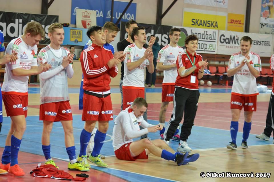 Trenér Martin Brychta tentokrát neměl důvod k nespokojenosti s úvodem zápasu, jeho svěřenci na Třinec vletěli a už v první minutě Michal Salák otevřel skóre po Hrdinově přihrávce, které předcházela vzorová kombinace. Červenobílí pak pokračovali v aktivitě, vytvářeli si šance, z dálky střílel aktivně hrající Ondřej Míča, ve výborné šanci byl znovu Salák, po něm také Hrdina a Vladimír Stibora. Výsledkem tlaku na třineckou obranu byl velký počet rohových kopů, žádný z nich ale ke kýženým brankám a zvýšení náskoku nevedl. Třinec byl na zápas dobře připravený, spoléhal na brejky a rychlé přenesení hry. Vyrovnání přišlo po dlouhém nákopu brankáře Kreželoka a velice povedené hlavičce Filipa Przycka, ke kterému se odrazil míč vyražený Ondřejem Vahalou - stalo se to v páté minutě zápasu. Oba týmy byly rychle na čtyřech faulech, takže se hrál trochu opatrnější futsal, slávisté přesto kontrolovali hru a dobývali obranu hostů. Šance jim ale mařil Kreželok i blokující obrana. Hosté navíc opět efektivně udeřili o deset minut později od vyrovnání, prosadil se znovu Przycko, který dotáhl ojedinělý protiútok – 1:2. Druhý poločas přinesl znovu řadu příležitostí domácích, které mohutně povzbuzovala skupina slávistických fanoušků, které futsalisté vtáhli svým nasazením a bojovností do hry. Fanoušci tleskali Salákově střele z otočky, Míčovu přímému kopu, ale také střelám, které zamířily do konstrukce branky – Martin Brychta trefil břevno hlavou, Hrdina nastřelil stejnou část branky pravačkou. Řadu šancí zblokovala obrana, několik zákroků si připsal i třinecký gólman, který odvedl velice dobrý výkon. Do sestavy Slavie se zapojila v druhém poločase také nová posila – slovenský mistr Martin Směřička a nutno říct, že do hry zapadl bez sebemenších problémů a i on přispěl k velkému obratu, který přišel po 32 minutách hry. Slávisté v rozpětí třiceti vteřin otočili skóre! Nejprve umístil krásnou tečí před brankářem Jan Homola míč do sítě a vzápětí po něm dokázal strhnout vedení na domácí stranu po krásném zpracování míče také Hrdina. Zasloužený obrat! I v závěru se diváci mohli bavit napínavým futsalem – nejprve Vladimír Stibora pronikl do soupeřovy obrany, ale znovu jenom nastřelil tyč. Sešívaní ještě ubránili roh a pak v samotném závěru přidali čtvrtou branku. Byla to akce symbolicky podobná té, kterou utkání začalo – do útoku šli Salák s Hrdinou, tentokrát si jenom vyměnili role – Salák nahrával a Hrdina zakončil! 4:2! Martin Brychta: Body za bojovnost a trpělivost „Věděli jsme, že Třinec hraje venku dobře, ale připravili jsme se na to. Byli jsme trpěliví až do nejzazších minut, kdy jsme skóre otočili. O přestávce jsem hráče upozorňoval na nebezpečné přenesení hry od brankáře, kdy se nám dostávali za obranu volní hráči. V druhém poločase se to zlepšilo, kluci se opravdu dnes kousli a vybojovali to. Pevně věřím, že už máme smolné zápasy za sebou, věřím, že jsme se poučili a budeme v podobných výkonech pokračovat. S Martinem Směřičkou jsme byli v kontaktu delší dobu, jeho příchod do Slavie zbrzdilo zranění. Hned na tréninku bylo vidět, jaké má kvality. Neměl jsem vůbec žádné obavy ho hned nasadit do zápasu.“ Andrea Bucciol (trenér SKP Ocel Třinec): Slavia tvořila hru a vyhrát si zasloužila Bohužel, tentokrát se z výjezdu vracíme bez bodů. Je to škoda, protože nám v několika situacích chyběla koncentrace a to rozhodlo. Inkasovali jsme po dvaceti vteřinách a v druhém poločase jsme si zase nechali dát dvě branky ve dvaceti vteřinách, to bylo na dnešním zápase nejhorší. Nicméně Slavie si výhru zasloužila, tvořila hru, měla šance a nám toho příliš nedovolila. My jsme si už z Třince vezli problémy, kvůli zraněním a pracovním povinnostem nám scházelo pět hráčů a negativně nás to ovlivnilo. Musíme zvednout hlavu a dát do zbylých zápasů vše, máme na to abychom splnili svůj cíl! Děkuji týmu za bojovný výkon, který na Slavii předvedl. (Děkujeme trenérovi hostů za fair hodnocení zápasu!) SK Slavia Praha – SKP Ocel Třinec 4:2 (1:2) Branky: 1. Salák (Hrdina), 33. Homola (Stibora), 34. Hrdina, 40. Hrdina (Salák) – 6. Przyczko (Kreželok), 15. Pryczko (Buryan) Slavia: Vahala (B)- Brychta, Novotný, Salák, Dvořák, Stibora, Směřička, Homola, Míča, Hrdina, Matějka (C), Wojnar, Nguyen Tung, Roshan Trenér: Brychta. Třinec: Kreželok (Kloda) – Mendrok(C), Samek, Buryan, Hudzieczek, Baron, Przyczko, Slavík, Kašický Trenér: Andrea Bucciol. |