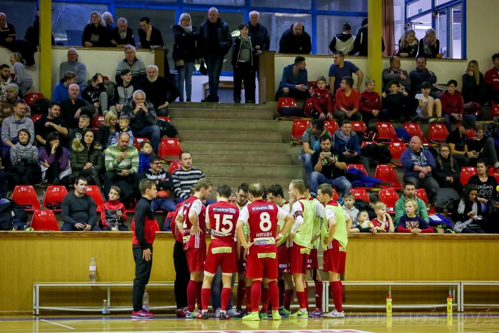 Uzdravený trenér Nenad Veljkovič postrádal v sestavě ze zdravotních důvodů Ondřeje Míču a slovenského univerzála Martina Směřičku. První poločas začal náporem ERA - PACKu, ale Slavia již od začátku bránila v kompaktním bloku a nepouštěla Chrudim do zakončení v okolí branky. A když domácí našli skulinu v obraně, tak byl pro sešívané velkou oporou brankář Kubíček, který zneškodnil jedovatý pokus Romana Mareše a dorážku Lukáše Rešetára. Slavia zahrozila v 7. minutě po uvolnění Vítězslava Hrubého, ale jeho střela z otočky minula branku. Další příležitost patřila domácím, kteří se mohli radovat po střele kapitána Rešetára, avšak proti byl znovu Kubíček, který vytáhl další ze svých výborných zákroků večera. Do šance se poté na druhé straně dostala Slavia. Novotný nastřeloval balón z poloviny na branku soupeře, kde bohužel patičkou netrefil Homola. Sám Novotný měl obrovskou příležitost po standardní situaci. Nejvíce za hlavu se ale slávisté drželi za hlavu po brejku dvou na brankáře, který zhatil nepřesností Arsovski. Slávisté se sami připravili o jasný gól a vedení. Ve 14. minutě se poprvé měnilo skóre. Max přijal osamocen za obranou hostů míč od gólmana Litviněnka a prostřelil Kubíčka. O minutu později to bylo již 2:0 po zásahu Davida Drozda, kterého nedůrazná obrana nechala trestuhodně projít do střelecké příležitosti, a za takového stavu se i oba týmy rozešly do kabin. Ve druhé půli začala Slavia nebojácně a hned tři minuty po začátku snížila. V před brankovém prostoru se nejlépe zorientoval Martin Brychta a dorazil střelu Krstevského - 2:1. Ovšem ERA - PACK znovu prokázal svou kvalitu a po zákroku Hrubého, který byl oceněn žlutou kartou, se ve 25. minutě dostal ke střele Max. Jeho první pokus Kubíček vyrazil, ale na dorážku stejného hráče již reagovat nedokázal. Překvapená slávistická obrana nedokázala balón zakopnout do bezpečí, i když k tomu měla příležitost. A o chvíli později bylo Slavii ještě hůře. Po obdobné akci a střele Rešetára se znovu z dorážky prosadil tentokrát Koudelka. Dlouhé minuty pak vypadalo, že už se skóre měnit nebude. Dvě individuální akce Felipeho vychytal výborný Václav Kubíček, ale nakonec se tři minuty před koncem po přihrávce Hrdiny trefil na zadní tyči připravený Jan Lištván. Slavia se na konci zápasu ještě pokusila o hru bez brankáře, ale tento tah již úspěch nepřinesl a i přes bojovný výkon podložený výborným Kubíčkem v bráně odjíždí sešívání z haly mistrovské Chrudimi bez bodu. Záznam na Livesport TV! Komentáře: Nenad Veljkovič (trenér Slavia): Takový zápas určitě potěší, hráli jsme skvěle a zase jsme si vytvořili velké množství šancí. Ale Chrudim je jeden z nejlepších týmů u nás a i v Evropě. Tlačili jsme se, a snažili se s nimi hrát a docela to vyšlo. Ve výsledku 4:2 mohl být menší rozdíl ve skóre, nebo i větší, byl to zajímavý zápas. Kluci podali dobrý výkon. Děkuji i soupeři za skvělý a fair-play zápas. Jan Homola (kapitán Slavia) : Byl to těžký zápas, to jsme všichni věděli. Domácí ukázali svou sílu. Měli hodně šancí. Musím pochválit Vaška Kubíčka, který zachytal skvělý zápas a díky němu zápas skončil takovým výsledkem, ale nemáme se za co stydět. Myslím, že to byl jeden z našich lepších zápasů v této sezóně. Felipe Conde (trenér FK ERA-PACK Chrudim): Je skvělé hrát zápasy, ve kterých oba týmy hrají takticky a mají kvalitní obranu. Díky těmto utkáním tým roste. Jsem za zápas rád, protože jsme si mohli vyzkoušet řadu útočných situací, které jsme z tréninku přenesli do praxe. Vytvořili jsme si řadu dobrých šancí, ale soupeřův brankář podal skvělý výkon. Důležitou věcí je, že si vytváříme spoustu řešení našich akcí, což bude v play-off velmi důležité. Věřím, že vyřazovací boje budou mít vysokou úroveň. Gratuluji oběma týmům k pěknému zápasu a ke snaze hrát futsal po celou dobu utkání. FK ERA - PACK Chrudim - SK Slavia Praha 4:2 (2:0) Branky: 14. Max (Litviněnko), 15. D. Drozd (Rešetár), 25. Max (R. Mareš), 27. Koudelka (Rešetár) – 23. Brychta (Krstevski), 38. Lištván (Hrdina) FK ERA-PACK Chrudim: Litviněnko (Žďánský, Hlouš) – R. Mareš, M. Mareš, Max, Koudelka, P. Drozd, D. Drozd, Doša, Sorokin, Rešetár, Slováček, Felipe. SK Slavia Praha: Kubíček (Žežulka) – Homola, Brychta, Novotný, Hrubý, Turek, Lištván, Hrdina, Arsovski, Krstevski, Šebek. Žlutá karta: 25. Hrubý Rozhodčí: Novotný, Lasch |