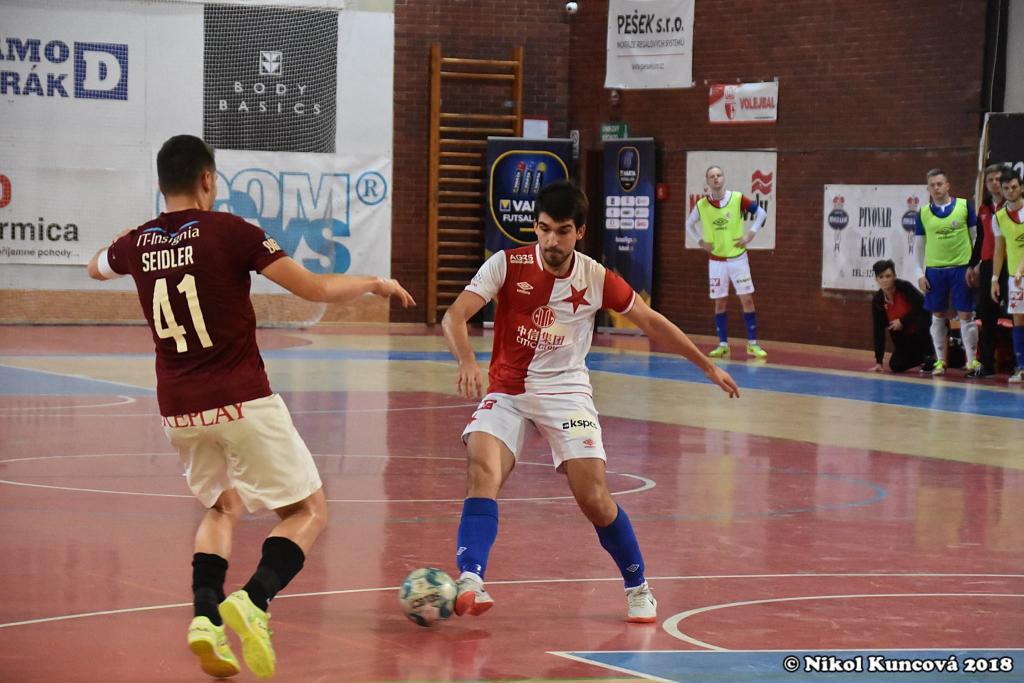 ![]() Zcela zaplněná hala v pražském Edenu viděla v sobotu odpoledne sedmnácté futsalové derby, které nakonec vyznělo lépe pro hosty. V prvním poločase dokázali sešívaní odpovědět na úvodní branku zápasu, kterou vstřelil Tomáš Vnuk, když vyrovnal technickou střelou Dodo. Již před tím nebyla poněkud diskutabilně uznána branka po údajném faulu na brankáře Gerčáka. Sparta ale znovu strhla vedení na svoji stranu, šťastným odrazem míče po rohovém kopu. Po přestávce pak přišel rozhodující třetí gól. Slávisté snížili až v poslední minutě, kdy konečný stav upravil na 2:5 Martin Směřička.