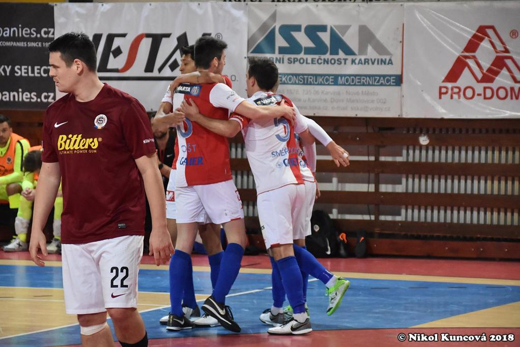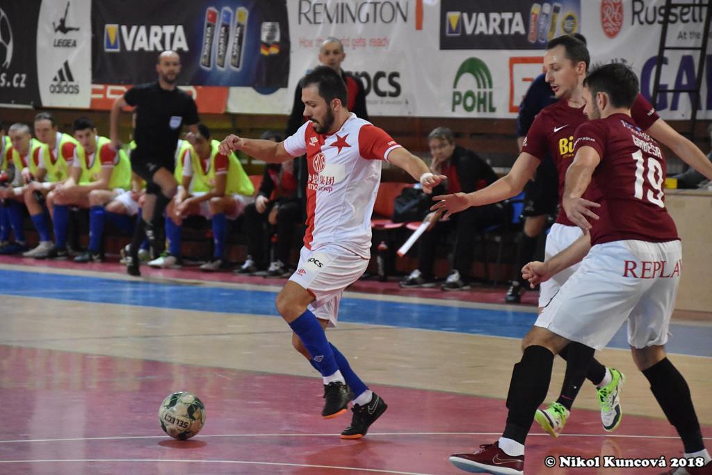 Slávistickému trenérovi Ivanu Božovičovi chyběl Marko Pršič. O tom, kdo začne na začátku v brance, se rozhodovalo až při rozcvičení, po kterém padla volba na Jana Žežulku, který nahradil Marka Karpiaka, kterého trápila viróza. Do prvních šanci se ve svižně hraném zápase dostali domácí – Radim Záruba a Dodo ale zkušeného reprezentanta Libora Gerčáka nepřekonali. Na druhé straně Žežulka včas vyběhl proti Michalu Seidlerovi. První branka přesto padla do jeho sítě, když ho v osmé minutě obstřelil Tomáš Vnuk. Slávisté vzápětí vyrovnali, ale rozhodčí Ondřej Černý po chvíli váhání branku neuznal a pískl Směřičkovi faul na Gerčáka. Platil až Dodův gól o minutu později, Brazilec obstřelil Gerčáka ranou z levého křídla po přihrávce Davida Jošta. Ve čtrnácté minutě se hosté dostali znovu do vedení, když se Novakova rána směřující mimo branku odrazila od Tomáše Drahovského do sítě v době, kdy navrch v utkání měla domácí Slavia. Sparta dohrávala pod pěti fauly, ale slávisty ke střele z 10m penalty nepustila. Po přestávce sešívaní usilovali o vyrovnání, Směřička nastřelil tyč, stejnou část branky ale trefil vzápětí na druhé straně i Seidler. Jenže sparťané měli i další šance, Vnuk napálil břevno, jednou zabránil již jistému gólu na brankové čáře Igor Leovski. Ve 31. minutě futsalista roku Seidler přidal třetí branku, když se k němu dostala přihrávka přes celé hřiště a zakončil po kličce Žežulkovi. Následovala rozhodující fáze utkání, Marko Radovanovič dostal druhou žlutou kartu a Sparta dokázala využít přesilovku a vedla už 4:1. Svoji druhou branku pak přidal ránou o tyč Drahovský. Slávisté hráli power-play, té ale chyběla rychlejší a přesnější rozehrávka. Gerčáka nakonec překonal až v poslední minutě po Zárubově přihrávce a pohotové otočce Směřička. Sparta se tak bodově dotáhla v tabulce na Slavii. Velké poděkování zaslouží fanoušci, kteří naplnili halu a vytvořili utkání velmi důstojnou kulisu. Ohlasy po utkání: Martin Směřička (Slavia): „Abychom uspěli, museli bychom proměňovat své šance, hlavně v prvním poločase jsme měli celou řadu přečíslení tři na dva a nic jsme z toho nedokázali vytěžit. Po přestávce nám chybělo trochu víc vůle, takhle se derby nehraje. Víme, jakou má Sparta kvalitu, pokud proti ní chcete uspět, musíte odehrát zápas s naprosto maximálním nasazením a koncentrací. Třetí a čtvrtý gól zápas rozhodly, power-play bychom hráli za příznivějšího stavu. Chtěl bych poděkovat všem divákům, kteří přišli a vytvořili skvělou kulisu, mrzí mne, že jsme se jim neodvděčili lepším výsledkem.“ Jan Žežulka (Slavia): „O mém startu od začátku se rozhodlo až těsně před zápasem při rozcvičce, kdy se ukázalo, že Marek nebude moci nastoupit. Prohráli jsme, pocity jsou po zápase mizerné. Neproměňujeme šance, doplácíme na to, v takových zápasech se to vždy projeví. Jsem rád, že přišlo tolik lidí, byl to zážitek zahrát si před plnou halou, škoda, že jsme fanouškům neudělali více radosti.“ Tomáš Vnuk (Sparta): „Zápas jsem si moc užil. Byl trošku vyhecovanější, ale to k derby patří. Z mého pohledu to bylo celkově pěkné utkání s velkým množstvím šancí, a to se muselo divákům líbit. Myslím, že jsme zápas kontrolovali a byli lepším týmem. Až tedy na začátek druhého poločasu, který jsme asi trošku zaspali, a Slavia měla dvě velké šance. Naštěstí nás ale podržel Libor Gerčák. Rozhodující pak byla naše třetí branka, která duel definitivně zlomila." SK Slavia Praha – AC Sparta Praha 2:5 (1:2) Branky: 9. Dodo (Jošt), 40. Směřička (Záruba) – 8. Vnuk (Novak), 14. Drahovský (Novak), 31. Seidler (Vnuk), 34. Seidler (Novak), 37. Drahovský (Seidler) Slavia: Žežulka (Karpiak) – Klíma, Krstevski, Směřička, Jošt, Sita, Leovski, Dodo, Radovanovič, Krasnič, Homola (C), Záruba, Hájek. Sparta: Gerčák (38. Vahala, Bezstarosti) – Seidler (C), Novak, Grbeša, Hora, Amrani, Vnuk, Cupák, Drahovský. Rozhodčí: Nešněra, Černý. ŽK: 25. Radovanovič (SLA), 31. Krasnič (SLA), 35. Záruba (SLA) – 15. Vnuk (SPA), 25. Cupák (SPA) ČK po druhé ŽK: 33. Radovanovič (SLA) |