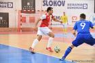 Slávisté inkasovali v samotném úvodu zápasu, když se smolně dvakrát odrazil míč před jejich brankou a Max poslal míč do sítě. Vyrovnání přišlo v 9. minutě, kdy napadající Klíma získal míč na pravé straně a přihrál ho před branku zkušenému Markovi Pršičovi, který překonal Litviněnka. V šestnácté minutě David Drozd dostal přihrávku od Maxe a překonal Karpiaka podruhé, bylo to ale naposledy – další branku už hosté dali jen do vlastní sítě, když si nastřelený míč před branku srazil za záda vlastního brankáře Everton. Červenobílí v závěru čelili náporu hostů, ale díky poctivé obraně mistrovský celek do žádné vyložené šance nepustili. Do utkání nezasáhli distancovaní Radim Záruba a Martin Směřička, poprvé zažil atmosféru VARTA futsal ligy také juniorský reprezentant Jan Trojan. Komentáře po utkání: Daniel Klíma (Slavia): „Hrál jsem proti Chrudimi poprvé a vybojovali jsme bod, je to úžasný pocit. Trenér nám říkal, že se musíme prezentovat velice koncentrovanou obranou a to si myslím, že byl základ našeho úspěchu. Chtěli jsme z ní vycházet, trenér mi přímo na tréninku ukazoval situaci, která vedla k vyrovnávací brance, věděl jsem, že musím přesně tento prostor zavírat. Dnes jsme si dokázali, že se můžeme porovnat i s Chrudimí, bude to určitě povzbuzení do další práce.“ Jan Homola (kapitán Slavie): „Je to hezký výsledek s těžkým soupeřem, který jsme si poctivou prací zasloužili, dostali jsme navíc dva smolné góly, ale na druhou stranu nám přálo štěstí při vyrovnávací brance. Je to sice hezký výsledek, ale nic to nemění na tom, že se proti silným soupeřům máme letos co napravovat.“ Felipe Conde (trenér FK ERA-PACK Chrudim): „Podle mého názoru jsme neodehráli dobrý zápas, čímž rozhodně nechci snižovat výkon soupeře, který předvedl skvělý výkon. Měli jsme problémy pochopit hru Slavie, což zapříčinilo nízkou produkci šancí, kterých jsme měli málo. Vítězství jsme si nezasloužili. Hra soupeře přes pivota nám dělala velké problémy, které jsme během utkání nedokázali vyřešit. Nemůžeme hledat žádné výmluvy. Nyní se musíme vrátit do tréninkového procesu a tvrdě pracovat, čekají nás další náročné zápasy, ve kterých chceme náš výkon posouvat kupředu. Gratuluji Slavii k výborně odehranému utkání.“ SK Slavia Praha – FK ERA-PACK Chrudim 2:2 (1:2) Branky: 9. Pršič (Klíma), 34. Everton (vla.) – 2. Max (D.Drozd), 16. D.Drozd (Max)