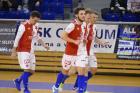 Slávisté dokázali během první části vývoj skóre otočit, nejprve se prosadil po Směřičkově rohovém kopu hlavou z několika kroků Homola, druhou branku pak přidal Martin Směřička, který na pivotu dostal přesnou přihrávku Radima Záruby a skóroval o břevno domácí branky. Slávisté v prvním poločase celou řadu dalších šancí nevyužili, velkou smůlu měl Záruba, jehož střely hned třikrát skončily na konstrukci branky, nejprve napálil břevno, pak jeho střelu upustil brankář Helasu na tyčku, stejnou část branky pak český reprezentant trefil i po Leovského nahrávce. Po přestávce měl obrovskou šanci Martin Brychta, který se dostal do zakončení po Směřičkově rohu, míč ale nasměroval vedle branky. Třetí gól domácích vstřelil kapitán David Cupák prudkou ránou z dálky, opět po standardní situaci. Slávisté o minutu později vyrovnali, když po přímém kopu Záruby se míč dostal k Hájkovi, který zpětnou přihrávkou vyzval ke skórování Směřičku, který se trefil parádně levačkou k tyči. Hosté se ujali vedení ve 32. minutě, když do útoku si na pravé křídlo zaběhl brankář Žežulka, dostal přihrávku od Igora Leovského a chladnokrevně zakončil střelou na bližší tyč. Slavia tak má nyní od Helasu již dvanáctibodový odstup a je jasné, že hůře než na pátém místě po základní části neskončí. V sestavě Slavie nadále chyběl David Jošt a Jan Křemen, který po karetním trestu již bude k dispozici pro pondělní dohrávku v České Lípě. Na palubovce Démonů se představíme od 20:30 hodin. Komentáře po utkání: David Filinger (Slavia): "Byl to pro nás velice těžký zápas, Helas má v týmu šikovné mladé kluky, navíc je tam zkušený David Cupák. První poločas jsme prospali, chyběla nám agresivita, chtěli jsme to jen odehrát, s tím nejsem spojený. Jsem rád, že nakonec rozhodla věc, které se na tréninku věnujeme. Brankáře nabádáme k tomu, aby se nebáli zapojit do útoku. To mi dnes udělalo radost." Jan Žežulka (Slavia): "Trénér mne při autu často vyhání až na soupeřu polovinu, ještě o přestávce mi říkal, abych to v těchto situacích hrál ještě výše, vyběhl jsem až na jejich šestku, dostal jsem dobrý míč a povedlo se mi dát gól. Byl jsem překvapený, kolik jsem dostal prostoru. Bál jsem se, že u mne budou všichni, ale byl jsem tam sám. Jsem rád, že jsem pomohl k výhře v tak těžkém utkání." Tomáš Galia (trenér Helasu): “Za dnešní výkon musím kluky pochválit, neboť to dnes Slavia nedostala zadarmo. Bodový zisk byl velmi blízko, bohužel rozhodla šťastná branka Honzy Žežulky, které předcházela naše taktická chyba. Jediné, co nás může po utkání mrzet, jsou neproměněné šance, při kterých nám chyběl potřebný klid a ligové zkušenosti.” Helas Brno - Slavia Praha 3:4 (2:2) Branky: 1. Poul (D. Cupák), 20. Poul, 24. Cupák - 9. Homola (Směřička), 18. Směřička (Záruba), 25. Směřička (Hájek), 32. Žežulka (Leovski) Helas: Mykytjuk - Hamala, David Cupák, Šarkozy, Sznapka, Lukšija, Kamenský, Matyska, Poul, Špička, Bílý, Mužík, Prokeš Slavia: Žežulka (Karpiak) - Brychta, Směřička, Leovski, Sláma, Radovanovič, Homola, Záruba, Hájek. |