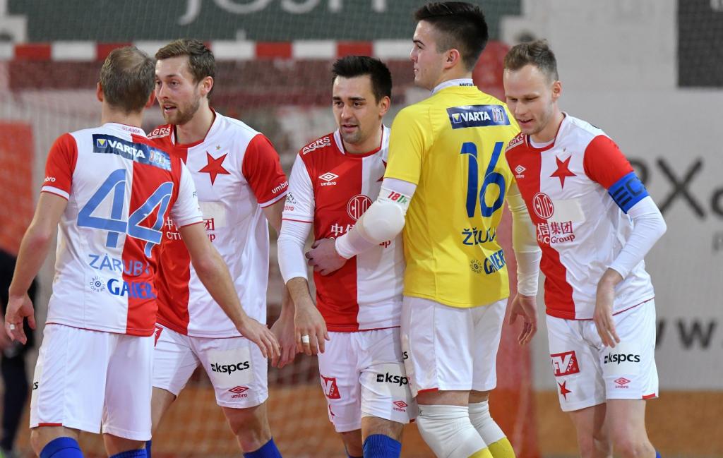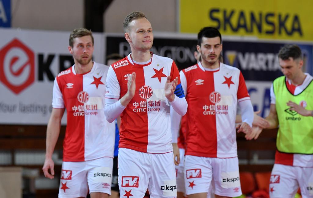 ![]() Slávisté vyhráli třetí zápas v řadě, když si v pátek večer poradili doma s Olympikem Mělník, který porazili vysoko 9:4. Stejně jako na podzim proti tomuto soupeři nastříleli hned v úvodu čtyři branky a rozhodli o osudu utkání. Martin Brychta zaznamenal další hattrick, dvakrát se trefil Radim Záruba. Po přestávce naskočil do hry také uzdravený slovenský gólman Marek Karpiak. Premiéru ve VARTA futsal lize si odbyl Svatopluk Plíšek. Olympik dokázal se Slavií držet krok pouze v druhé části prvního poločasu a v závěru, velký problém mu dělaly slávistické standardky.