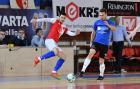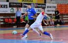 Slávisté rozhodli o osudu utkání během úvodních sedmi minut. Nejprve se trefil, jak je jeho zvykem, z dobré pozice před brankou Brychta, po něm poslal míč po Slámově nahrávce o tyč do sítě Radovanovič, třetí gól zařídil po Směřičkově přihrávce kapitán Homola. Nejhezčí byla čtvrtá branka, kterou po Homolově nahrávce vstřelil technickým obloučkem přes mělnického gólmana Směřička. Olympik pak dokázal dvakrát snížit ve fázi, kdy se hra opticky trochu vyrovnala, poslední slovo v prvním poločase měl ale opět Brychta po Zárubově pasu. Po přestávce Slavia přidala čtyři branky v řadě, navíc v brance výborně zachytal Karpiak. Dvakrát se v rozmezí dvou minut trefil Záruba a mohl zkompletovat hattrick i ve třetí šanci. Jednu branku dal Daniel Hájek, hattrick završil nakonec ve druhém zápase za sebou Brychta. Do druhého poločasu zasáhl také Svatopluk Plíšek, jeden ze zlatých medailistů z týmu Slavia U19. Mělník dvěma brankami v závěru zkorigoval výsledek - Vokoun se trefil z 10m penalty za šestý faul, Hrdý z dálky po tečované ráně. Slávisté na desátou branku i přes řadu šancí nedosáhli, pokladník Homola tak nedostal šanci nikoho zkasírovat. Komentáře po utkání: David Filinger (Slavia): „Jsem tentokrát spokojený s průběhem celého zápasu, který jsme měli pod kontrolou od začátku do konce a vyhráli jsme ho o pět branek. Čtyřikrát jsme inkasovali, ale to k futsalu patří, bylo to z penalty a po tečované střele. Máme za sebou tři zápasy proti týmům, které hrají o záchranu, nebylo to jednoduché, ale zvládli jsme je. Body se počítají, můžeme se začít chystat na derby.“ Marek Karpiak (Slavia): „Jsem velmi rád, že jsem se po půlroce vrátil k futsalu, bylo to dlouhé čekání. Byl jsem trochu nervózní, ale chytil jsem se na několika střelách a bylo to lepší. Inkasované branky mne mrzí, jeden byl z desítky, druhý polovlastní, ale to nevadí, hlavně, že jsme hráli dobře a zvládli jsme to odehrát tak, jak jsme chtěli.“ Jakub Němec, (trenér Mělníka): "Věděli jsme, že Slavia nejvíc hrozí z jejích rohů. Celý týden jsme se na to připravovali a v zápase po 6 minutách dostaneme 3 góly z rohu. Co na to říct... Strašně nás to položilo. Do poločasu se nám ještě podařilo trošku zvednout a dostat do hry, ale hned po poločase jsme si nechali dát další laciné branky na 7:2 a bylo po zápase. Dokud se nenaučíme pořádně bránit, tak s takovými soupeři můžeme těžko něco uhrát. Musíme si to zhodnotit a pořádně se připravit na existenční zápas příští týden s Vysokým Mýtem." SK Slavia Praha – SK Olympik Mělník 9:4 (5:2) Branky: 2. Brychta (Homola), 4. Radovanovič (Sláma), 6. Homola (Směřička), 7. Směřička (Homola), 17. Brychta (Záruba), 22. Záruba (Směřička), 23. Záruba (Homola), 26. Hájek (Křemen), 29. Brychta (Záruba) – 9. Mikyska (Vokoun), 16. Gabčo (Hrdý), 38. Vokoun (10 m kop), 38. Hrdý SK Slavia Praha: Žežulka (21. Karpiak) – Brychta, Plíšek, Směřička, Leovski, Sláma, Radovanovič, Homola (C), Záruba, Hájek, Křemen SK Olympik Mělník: Mareš (Šanda) – Mikyska, Moravec, Vokoun (C), Gabčo, Hochman, Hrdý, Prejsa, Šup, Machytka, Gombáš Rozhodčí: Melničuk – Chládek |