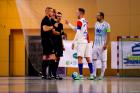 Na šance diváci nemuseli dlouho čekat – nejprve domácí nastřelili břevno po útoku tři na jednoho, do kterého se dostali po nepovedeném slávistickém kontru. První velkou šanci sešívaných měl kapitán Homola, který zakončoval po kombinaci s Joštem. V osmé minutě hráči v modrobílém otevřeli skóre, když se ze standardky ze sedmi metrů prosadil Seidler. O chvíli později mohl srovnat Jošt, ale Němec jeho pokus dokázat vyrazit mimo tyče. Za tři minuty už ale bylo vyrovnáno – Záruba zamířil do sítě z pravé strany po Joštově přihrávce. V šestnácté minutě Interobal znovu vedl, když Rick připravil Seidlerovi snadné zakončení do odkryté branky. Už za dvě minuty ale Filip Vaktor skvěle zpracoval přesnou přihrávku od svého reprezentačního kolegy Matúše Ševčíka a z druhého doteku zakončil – 2:2. Poslední slovo měl v první půli Lukáš Rešetár, který tečovanou ranou z devíti metrů zvýšil na 3:2 pro Plzeň. Nutno uznat, že to bylo pro Slavii milosrdné skóre, mistrovský celek v prvním dějství celou řadu šancí zahodil. Po přestávce dal čtvrtou branku domácích Rick, který prostřelil Karpiaka z levého křídla na bližší tyč přesnou ránou nad rameno. Jenže to bylo ze strany svěřenců Marka Kopeckého z hlediska branek všechno. Za dvě minuty Sita levačkou prostřelil Němce a stejnou nohou zakončil ve 35. minutě přímý kop Dominik Ostrák – 4:4. Čtyři minuty před koncem Záruba naběhl vzorově na zadní tyč a kolenem usměrnil do sítě prudký Křemenův centr. Slávisté pak i s trochou štěstí ubránili dlouhou plzeňskou power-play a po dvou letech odvezli ze západu Čech plný počet bodů. Komentáře po utkání: David Frič (trenér Slavia): "První půli jsme odehráli bez dostatečného nasazení v obranné i útočné fázi, nedostupovali jsme soupeře a nebyli aktivní, chyběla osobní zodpovědnost hráčů. O přestávce jsme si k tomu něco řekli a v druhém poločase se to o něco zlepšilo, ale dnes vyhrál šťastnější tým, nikoliv ten lepší. Za čtyři body z prvních dvou těžkých zápasů jsme samozřejmě rádi, budeme mít klid na další přípravu." Radim Záruba (Slavia): "Celý první poločas z naší strany nebyl vůbec dobrý, i když jsme dali dva góly, tak to bylo strašidelný. Takže jsme rádi, že jsme v závěrečných minutách všechno vylepšili, a nakonec se zápas vydařil i výsledkově." Tomáš Matějka (sportovní ředitel Slavia): "Ze své hráčské kariéry si s Plzní pamatuji jen výhry. Doufám, že se vracíme ke starému trendu (smích). Výhry nad mistrem si velmi ceníme. Za velmi důležitý faktor považuji naší disciplínu jak na hřišti, tak na lavičce. V tomto aspektu jsme soupeře výrazně předčili." Michal Seidler (Interobal Plzeň): „Byl to pro nás špatný zápas. Byli jsme podle mě celý zápas lepší, jenže nám dnes chyběly góly. Neproměnili jsme spoustu šancí v obou poločasech. Slavia nám ke konci z ničeho nic dala dva góly, otočila zápas a máme nula bodů.“ SK Interobal Plzeň – SK Slavia Praha 4:5 (3:2) Branky: 8. Seidler (Holý), 16. Seidler (Rick), 19. Rešetár (Holý), 23. Rick (Vnuk) – 11. Záruba (Jošt), 18. Vaktor (Ševčík), 24. Sita (Ševčík), 35. Ostrák, 37. Záruba (Křemen) SK Interobal Plzeň: Němec (Vahala, Luhový) – Buchta, Holý, Vnuk, Rešetár (C) – Rick, Seidler, Zdráhal, Kozár – Štrajt, Havel, Künstner. SK Slavia Praha: Karpiak (Vondráček) – Záruba, Homola (C), Jošt, Daniel – Ševčík, Sláma, Leovski, Vaktor – Brychta, Sita, Křemen, Ostrák. Žluté karty: 12. Rick (PLZ), 25. Holý (PLZ), 27. Rešetár (PLZ), 35. Němec (PLZ), 39. Seidler (PLZ) – 17. Ševčík (SLA), 37. Daniel (SLA), 37. Frič (trenér) (SLA) Rozhodčí: Nešněra, Nagy, Bydžovský |