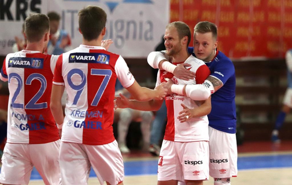 ![]() Slavia si v dohrávce 3. kola 1. Futsal ligy připsala tři body za domácí vítězství nad Helasem Brno, který porazila 5:0. V prvním poločase se trefil pouze Daniel, po přestávce na něj dvěma brankami navázal Jan Křemen a jednou Radim Záruba a Dominik Ostrák. Červenobílí svého soupeře v tabulce o bod přeskočili. V prvním poločase se do zápisu zapsal mezi střelce pouze Daniel, který využil přihrávky Jana Křemena pro otevření skóre. Helas mohl vyrovnat, když se jeho nejzkušenější hráč David Cupák obtočil hbitě před slávistickou brankou, pak ale nastřelil tyč. Helas několikrát v průběhu prvního poločasu hrál power-play a úspěšně se snažil kouskovat hru. Po přestávce po pěkné Homolově akci u zadní tyče poslal míč do sítě Dominik Ostrák, o čtyři minuty později pak střeleckou smůlu protrhl i Radim Záruba. Poslední dvě branky přidal Jan Křemen, nahrávali mu Daniel a kapitán Jan Homola. Komentáře po utkání: Radim Záruba (Slavia): "Pátek jsme si vyříkali, všichni víme, kde byla chyba, musíme začít znovu tak jak jsme končili minulou sezonu - hrát poctivě odzadu a nepodcenit vůbec nic. Dneska jsme si mnohem víc věřili, a proto jsme to dokázali v druhém poločase zlomit. Myslím, že se občas snažíme moc všechno zakončovat silou, v koncovce nám chybí lehkost, technické zakončení, nebo zvednout hlavu a najít spoluhráče. Jsem rád, že mi to tam taky padlo, máme v kabině nějaké přehledy, ze kterých vím, že se mi nejvíc daří proti Helasu, tak jsem rád, že jsem to potvrdil." Filip Havrda (Helas Brno): "Do zápasu se Slavií jsme z důvodu několika absencí vstoupili ze zabezpečené obrany s hrou na brejky. První poločas jsme si své obranné povinnosti až na jeden moment splnili a do kabin se šlo za stavu 1:0 pro domácí. Do druhého poločasu jsme šli s cílem neinkasovat rychlý druhý gól, což se nám povedlo. Druhý inkasovaný gól jde určitě za mnou. V ten moment jsme dostali domácí tým do pohody a Slavia během několika minut přidala další 3 góly. Výsledek může hovořit zcela jednoznačně, ale myslím, že ačkoliv jsme přijeli do Prahy s velice zúženým kádrem, tak se nemáme za co stydět." Záznam na webu České televize! SK Slavia Praha - Helas Brno 5:0 (1:0) Branky: 7. Daniel (Křemen), 27. Ostrák (Homola),31. Záruba (Daniel), 31. Křemen (Daniel), 37. Křemen (Homola) SK Slavia Praha: Karpiak (Vondráček) – Brychta, Vaktor, Sita, Leovski, Ševčík, Homola (C), Daniel, Hrdina, Ostrák, Záruba, Křemen Helas Brno: Daněk (Konečný) – Cupák (C), Šarközy, Sznapka, Presl, Galia, Poul, Mužík, Havrda