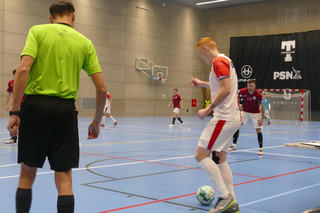 Do utkání vstoupila mnohem lépe Slavia, už ve dvacáté vteřině zápasu Jošt otevřel skóre, když využil Brychtovy přihrávky a poslal míč kolem Hůly do sítě. Sešívaní pak svého soupeře napadali od poloviny hřiště a čekali na příležitosti k protiútokům. Jeden z nich využil v 8.minutě Kuchta k navýšení náskoku, když si parádně připravil míč kličkou před obráncem a poslal ho nechytatelně pod břevno. Trenér Sparty zareagoval střídáním brankářů a mezi tyče zamířil Cristiano. Slávisté ale také nového sparťanského gólmana záhy překonali - v šestnácté minutě po akci Záruby a Brychty, zakončení obstaral prudkým volejem Jošt. Domácí tým snížil dvě minuty před přestávkou, když Hora uvolnil patou Kelmendiho a ten zblízka prostřelil Vondráčka. Sparta pokračovala v power-play, ale udělala chybu, kterou využil Sita ke střele přes celé hřiště do odkryté branky a futsalisté z Edenu šli do kabin s tříbrankovým náskokem. Po přestávce svěřenci Beniho Simitčiho zatlačili Slavii na její polovinu, hráli dlouho power-play, ale náskok soupeře se jim nakonec nepodařilo dotáhnout. Sešívaní poctivě bránili a několikrát je svými zákroky podržel Adam Vondráček. Ve 26. minutě mu pomohlo břevno, které nastřelil Maxharraj. Nakonec ho překonal Martin Hora, který do sítě vrátil míč, který Vondráček vyrazil po jedné ze střel před sebe. Dvě minuty před koncem si srazil hrající trenér Sláma střelu Kelmediho do vlastní branky a utkání tak bylo dramatické až do samotného závěru. V něm právě Sláma ještě trefil přes celé hřiště tyčku a stejnou část brankové konstrukce zasáhl svým pokusem i Hrdina. Sparta i přes drtivou power-play vyrovnat nedokázala a na prosincové finále se tak můžeme připravovat tým z Edenu. Kometáře po utkání: Zdeněk Sláma, trenér Slavie: „Před začátkem jsem si stěžoval, že nedáváme góly, tentokrát to bylo naopak. Dnes jsme dali vše, co jsme měli, a vytvořili jsme si náskok. Pak už to byla z naší strany jenom zodpovědná obrana. Trochu mě mrzí, že jsme se trochu báli hrát a dost míčů jsme vyhodili z obrany a nešli jsme do hry. Protože vím, že na to máme kvalitu, abychom to rozehrávali. Tlak byl pak velký a jednostranný, kdybychom více hráli, vypadalo by to jinak. Power-play jsme ale ubránili moc dobře, bylo to těžké, ale byl to od nás velice odpovědný výkon.“ Beni Simitči, trenér Sparty: „Chtěli jsme se vyvarovat některých věcí a pak se ve dvacáté vteřině necháme překvapit kvůli naší chybě a inkasujeme. Pak jsme dostali další gól. Máme mladý tým, u kterého se může stát, že odehraje tři, čtyři pěkné zápasy, ale pak i kvůli nedostatku zkušeností výkonnostně odpadne, někteří hráči nejsou ještě na takový tlak zvyklí. Nevstoupili jsme do zápasu tak, jak jsme byli domluvení. Potřebovali jsme pak celý poločas, abychom se do toho dostali. Po přestávce už jsme jenom honili výsledek. Slavia úporně bránila a využila našich chyb. Musíme se k tomu postavit čelem, gratuluji jí k postupu.“ Sparta Praha – SK Slavia Praha 3:4 (1:4) Branky: 19. Kelmendi (Hora), 27. Hora (Brahimi). 38. Kelmedi – 1. Jošt (Brychta), 8. Kuchta, 16. Jošt (Brychta), 20. Sita Sparta: Hůla (8. Cristiano) – Brahimi, Formánek, Kočovský, Fabricio, Maxharraj, Rukovci, Darrier, Mottl, Hora, Barnet, Mikus, Kelmendi. Trenér Beni Simitči. Slavia: Vondráček (Žežulka) – Brychta, Jošt, Sita, Havrda, Tillinger, Kuča, Sláma, Kuchta, Homola (C), Vaktor, Hrdina, Záruba. Trenér: Zdeněk Sláma Rozhodčí: Lafek, Dragoun, Cichra |