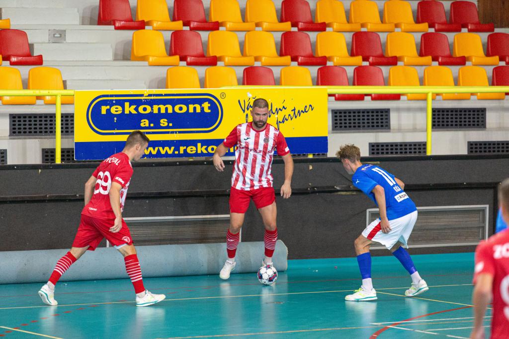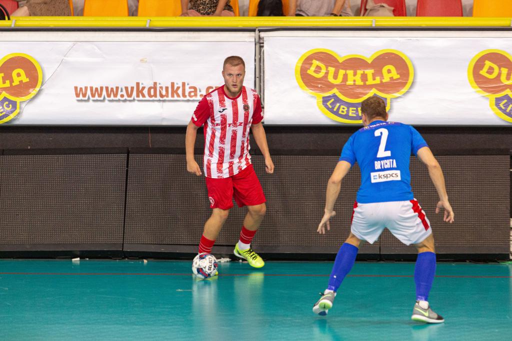 ![]() V předposledním přípravném utkání před začátkem 1. Futsal ligy porazili futsalisté Slavie FTZS Liberec na jeho palubovce 5:1. Hattrickem se blýskl slovenský reprezentant Matúš Ševčík, po jedné brance přidali Filip Vaktor a Jan Palatka. Za domácí tým snižoval v poslední mínutě David Vyčítal. Slavia zakončí plán svých přípravných zápasů v pátek 18. srpna v Mělníce proti Olympiku. Novou sezonu 1. Futsal ligy začne pak v Edenu proti Ústí nad Labem v pátek 25. srpna ve 20 hodin. FTZS Liberec - SK Slavia Praha 1:5 (0:2) Branky: 40. Vyčítal (Žoček) - 2. Ševčík (Sandeckij), 12. Ševčík (Vaktor), 27. Vaktor (Ševčík), 30. Palatka (Kodatskij), 31. Ševčík (Sandeckij) FTZS Liberec: Vogt - Novotný, Žoček, Daněk, Zounek, Vyčítal, Jelínek, Žampa, Benek, Pavel Bína, Mečíř, Stibor, Šorsák, Masařík SK Slavia Praha: Vondráček (Markanych) - Vaktor, Ševčík, Havrda, Slapnička, Kuča, Palatka, Sandeckij, Kodatskij, Tsopa, Brychta |