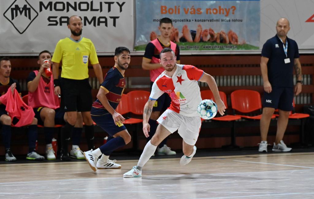 Od úvodního hvizdu se hrál v Edenu zápas s velkým nasazením, bojovalo se nekompromisně o každý míč. Interobal aktivně napadal rozehrávku Slavie, svěřenci Zdeňka Slámy ale týmově a zodpovědně bránili. Pokud se mistrovský tým dostal do zakončení, nedokázal překonat v dobré formě chytajícího Vondráčka. Jediná branka v prvním poločase tak padla ve 13. minutě, kdy si hosté vykombinovali akci až do prázdné branky. Po Vnukově přihrávce poslal míč do sítě Kaká - 0:1. Po přestávce pokračoval tvrdý boj o každý míč. Slávisté měli své šance - například Havrda, Homola a Kuchta, ale Němec se stejně jako Vondráček rozchytal ke svělému výkonu. Druhá branka hostů přišla při přesilovce po vyloučení Antonína Hrdiny, který při střetu s brankářem Němcem trefil soupeře neúmyslně a nešťastně do hlavy a dostal druhou žlutou a červenou kartu. Obsazení bylo při druhé trefě hostů stejné, Vnuk znovu připravil snadné zakončení pro Kaká. Slávisté nasbírali pět faulů, čelili hned třem pokutovým kopům z 10m, Vondráček ale všechny tři zlikvidoval. Červenobílí v závěru hráli power-play, v brankářském dresu naskočil na palubovku Ondřej Míča, ale ani "náhradního" gólmana Ondřeje Vahalu se jim překonat nepodařilo. Neproměněné šance tak zůstaly jediným negativním aspektem výkonu, který proti v současnosti nejsilnějšímu týmu u nás předvedli. Komentáře po utkání: Adam Vondráček (brankář Slavie): "Dnes jsme ukázali velkou bojovnost a do defenzívy to bylo dobré. Jediné, co nás může mrzet, jsou neproměněné šance. Dokázali jsme si, že můžeme držet krok s nejlepším českým týmem. Myslím si, že na tento výkon můžeme navázat i v příštím kole v Chrudimi. A tři chycené penalty? Naštěstí to všechno bylo kopnuté tak, že se to dalo chytit. Je jenom škoda, že nám tam na druhé straně něco nespadlo. Bez gólů se nedá vyhrát." Adam Knobloch (hráč Interobalu): "Škoda, že jsme nevyužili šance, které jsme měli, včetně několika brejku dva na jednoho nebo tři na dva. Naštěstí jsme to ale zvládli a do sezóny vstoupili tak, jak jsme chtěli.” SK Slavia Praha - Interobal Plzeň 0:2 (0:1) Branky: 13. Kaká (Vnuk), 35. Kaká (Vnuk) SK Slavia Praha: Adam Vondráček (Jan Žežulka) – Martin Brychta, Denys Sandeckyi, Zdeněk Sita, Filip Havrda, Matúš Ševčík, Lukáš Kuča, Ondřej Míča, Tomáš Kuchta, Jan Homola, Filip Vaktor, Antonín Hrdina, Jan Křemen. Trenér: Zdeněk Sláma Interobal Plzeň: Lukáš Němec (Ondřej Vahala) – Gabriel Rick, Tomáš Buchta, Peter Kozár, Tomáš Vnuk, Kaká, Michal Holý, Francisco Mikuš, Vitinho, Adam Knobloch. Trenér: Marek Kopecký ŽK: 13. Kuchta (SLA), 23. Hrdina (SLA) – 20. Kopecký (trenér) (PLZ), 27. Rick (PLZ). 2.ŽK=ČK: 34. Hrdina (SLA). Rozhodčí: Nešněra, Čep, Vévodová Důležité doplnění: Disciplinární komise SFČR vydala 11. října 2023 poměrně zásadní rozhodnutí. Dosud stoprocentní SK Interobal Plzeň přišel o výhru na Slavii kvůli chybě v zápise o utkání. Výsledek utkání 3. kola 1. Futsal ligy je tak po rozhodnutí DK 5:0 pro Slavii. Interobal Plzeň neměl v zápise uveden povinný počet osmi českých hráčů. |