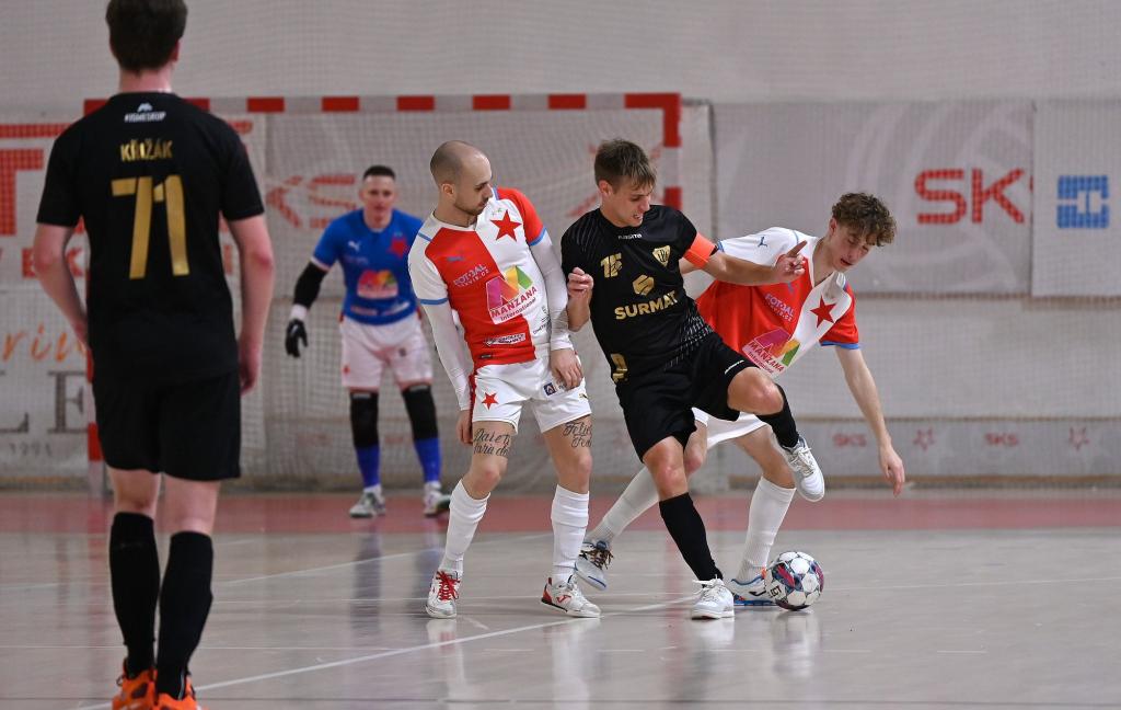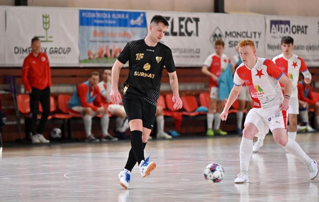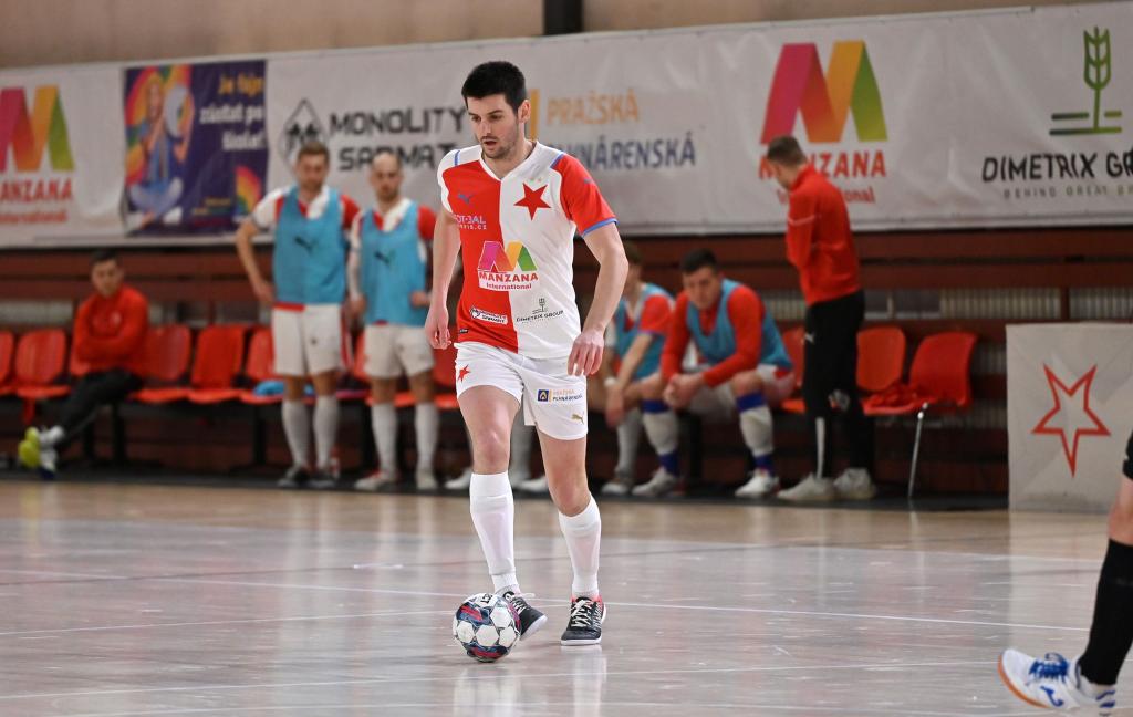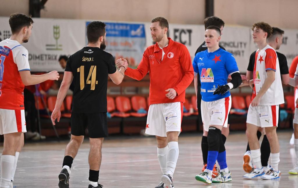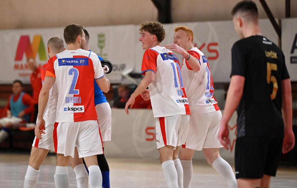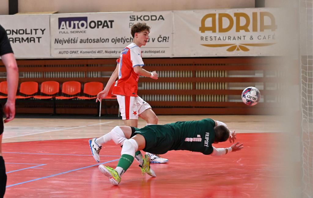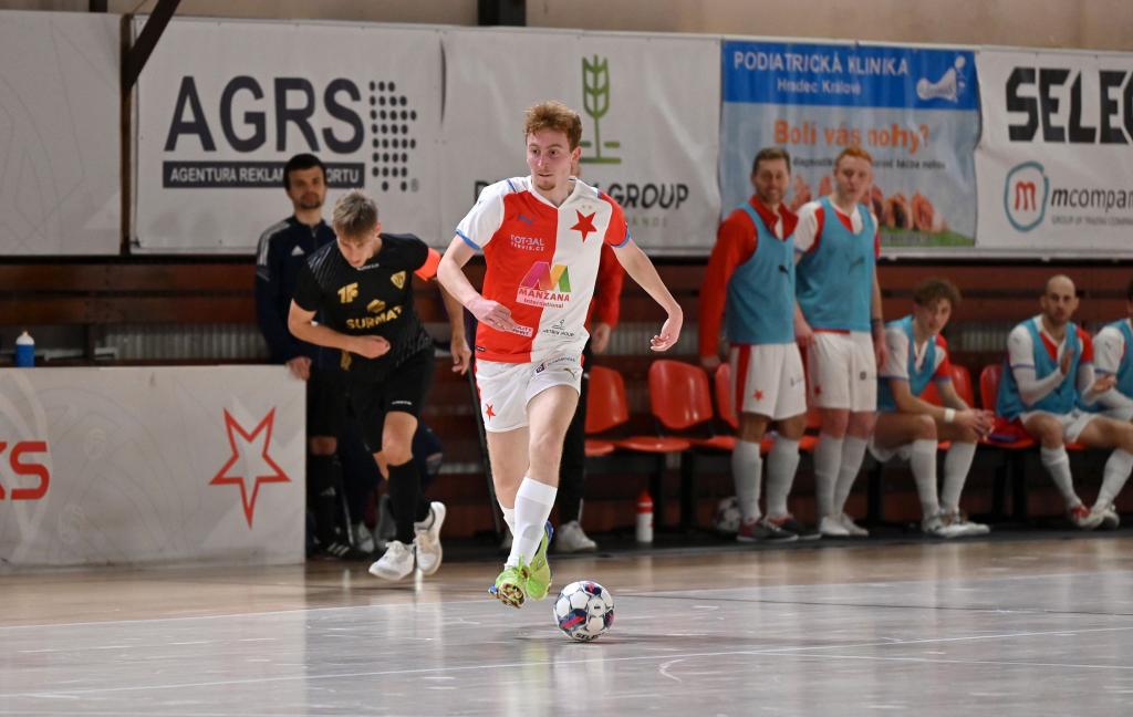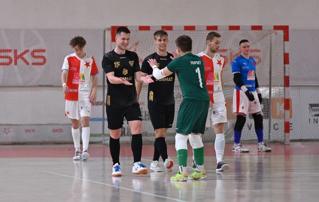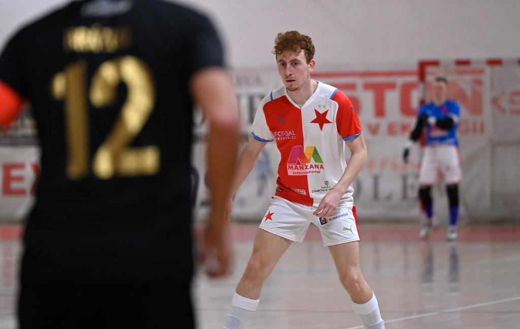 ![]() Zlatí medailisté z Juniorské ligy dostali od trenéra Zdeňka Slámy velký prostor v posledním zápase základní části, ve kterém Slavia proti sestupující Olomouci potvrdila třetí místo a vyhrála 9:2. Lukáš Kuča zapsal první hattrick, Filip Klaban a Denis Jiří Kočovský první gól. Premiéru na palubovce zažil také Aldiyar Kazbekov.