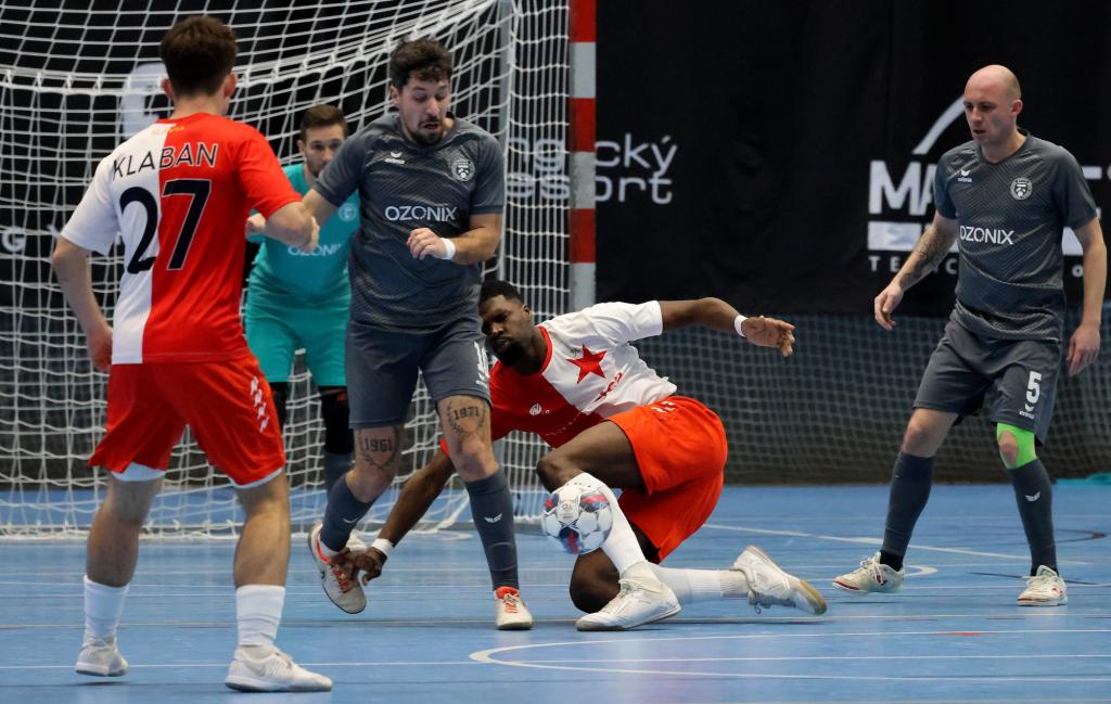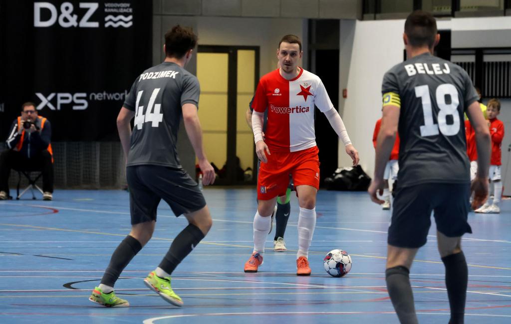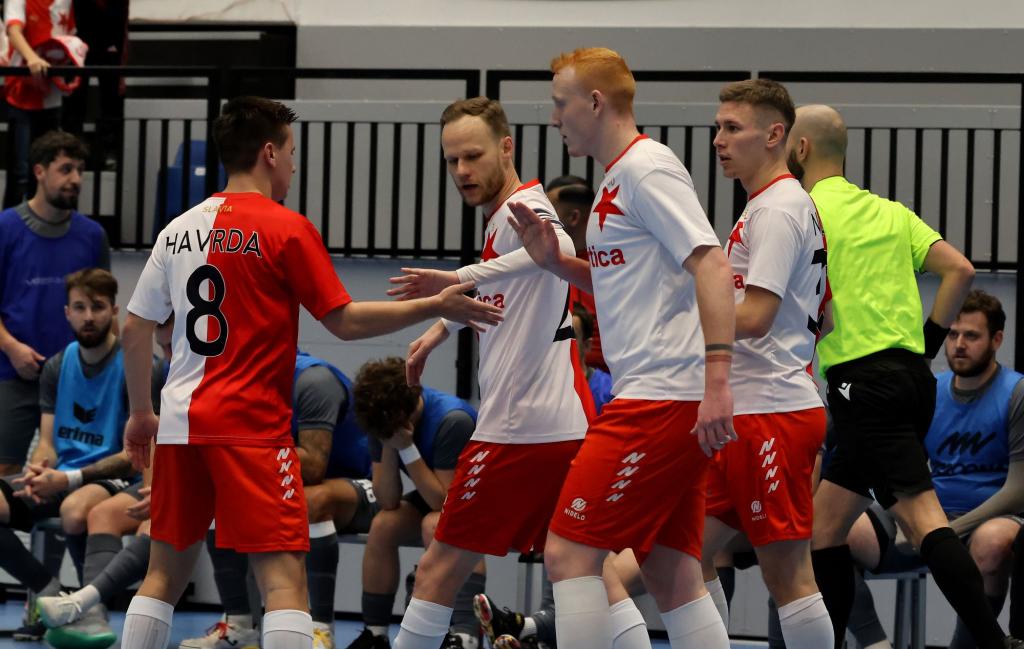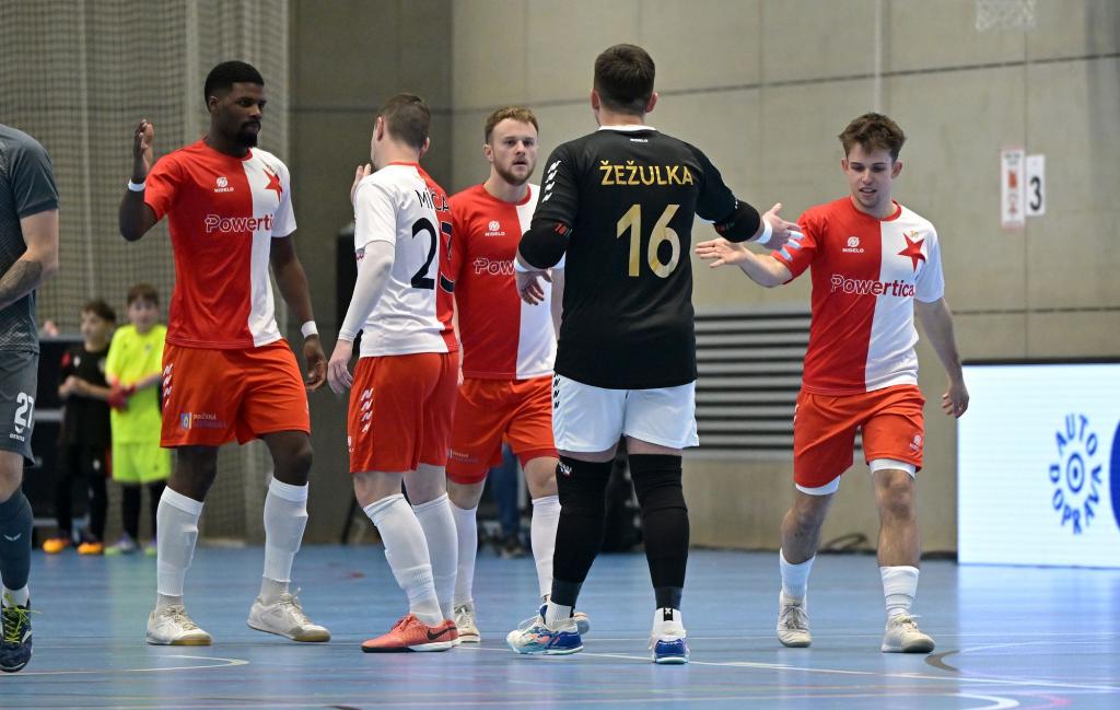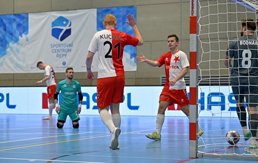 Výsledek po poločase byl stejný jako v prosincovém zápase v Kadani – Slavia vedla tři nula. Také v Praze musel předvést svoji dobrou formu reprezentační brankář Jan Žežulka. Hosty držel svými zákroky ve hře jeho protějšek Radek Novák. První branka padla už ve třetí minutě – Diaby přesnou přihrávkou připravil snadné zakončení Klabanovi – 1:0. V 11. minutě zvýšil parádní ránou do rohu branky kapitán Jan Homola – 2:0. Ve 13. minutě Diaby napálil z otočky břevno. V 18. minutě zvýšil na 3:0 po Kuchtově asistenci Nečas. Hosté stejně jako v prosinci nedokázali své šance využít. Po přestávce Jakub Lattish postupoval sám na Žežulku, ale nedokázal ho prostřelit. Stejně skončila i další obrovská šance Jaroslava Holmana. A tak Slavia přidala další údery. Ve 24. minutě nadvakrát dostal míč z pozice před brankou do sítě Diaby – premiérová branka ve Slavii – 4:0. V rychlém sledu přidali další dvě branky Klaban a Kuchta a bylo to 6:0. Ve 29. minutě po faulu na Diabyho proměnil penaltu Ondřej Míča – 7:0. A další branky padly hned v následujících dvou minutách – autory byli Kuchta a Havrda – 9:0. V 33. minutě Diaby získal míč při soupeřově power play a dovezl ho do prázdné branky – 10:0. Hosté pak prolomili nulu na svém kontě, když David Kursa prostřelil Olivera Ouhrabku, který naskočil do hry místo Žežulky – 10:1 pro Slavii. Příběh nedělního zápasu pak uzavřel Kuchta dotažením hattricku a Nečas zvýšením na 12:1. Hosté stihli ještě korigovat Podzimkem na konečných 12:2 pro domácí. Nic na tom už nezměnila ani tyčka, kterou trefil Zdeněk Sláma. Ohlasy po utkání: Tomáš Kuchta (Slavia): "Jsou to pro nás hodně důležité body, připravovali jsme se na oba zápasy poctivě, byly pro naši celou sezonu stěžejní. Jsem rád, že jsme to zvládli. Když jsem dal první gól, napadlo mě, že jsem nikdy nedal hattrick, zatímco ostatní už ho mají. Třetí gól jsem tam už napálil vší silou a odškrtl jsem si to. Není to ale tak důležité jako tři body, které jsme získali. Ve Vyškově nás čeká úplně jiný zápas, musíme se na nějco nejlépe připravit." Lukáš Krok (Inter FC Kadaň): "„V prvním poločase jsme byli Slavii rovnocenným soupeře,ale bohužel opět našemi individuálními chybami jsme dostali tři góly . Druhý poločas jsme totálně vyhořeli a bohužel si ze Slavie odvážíme debakl. Teď se musíme připravit na příští týden to bude zápas o všechno.” SK Slavia Praha – International FC Kadaň 12:2 (3:0) Branky: 3. Klaban (Diaby), 11. Homola, 18. Nečas (Kuchta), 24. Diaby (Klaban), 25. Klaban (Míča), 25. Kuchta (Havrda), 29. Míča (pen.), 30. Kuchta (Homola), 31. Havrda, 33. Diaby, 34. Kuchta (Homola), 36. Nečas (10 m kop) – 34. Kursa (Podzimek), 37. Podzimek (Dragomir) SK Slavia Praha: Jan Žežulka (Oliver Ouhrabka) – Jan Homola, Filip Havrda, Tomáš Kuchta, Yadali Diaby, Lukáš Nečas, Ondřej Míča, Filip Klaban, Radek Kibal, Tomáš Zíta, Lukáš Kuča, Zdeněk Sláma. Trenér: Zdeněk Sláma International Futsal Club Kadaň: Radek Novák – Jauib Kiliján, Jaroslav Holman, Michal Belej, Jan Podzimek, Jakub Lattisch, Jiří Duplinský, Jan Čihák, Milan Karpíšek, Lukáš Treml, David Kursa, Lukáš Dragomir, Zdeněk Uhlík. Trenér: Michal Belej Rozhodčí: Filip Nešněra, Ondřej Černý, David Lafek |