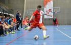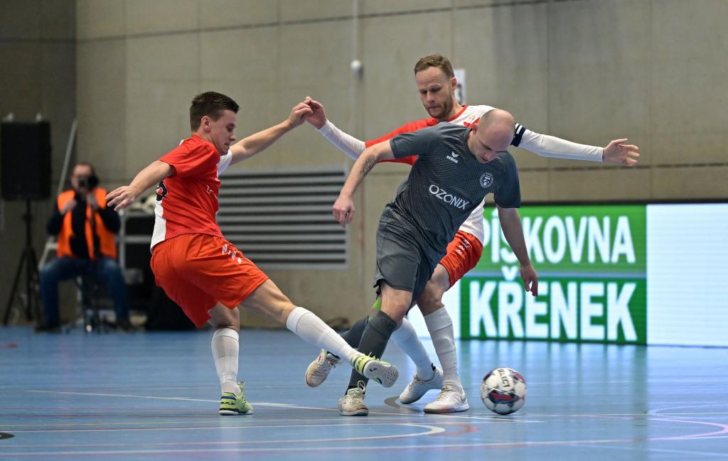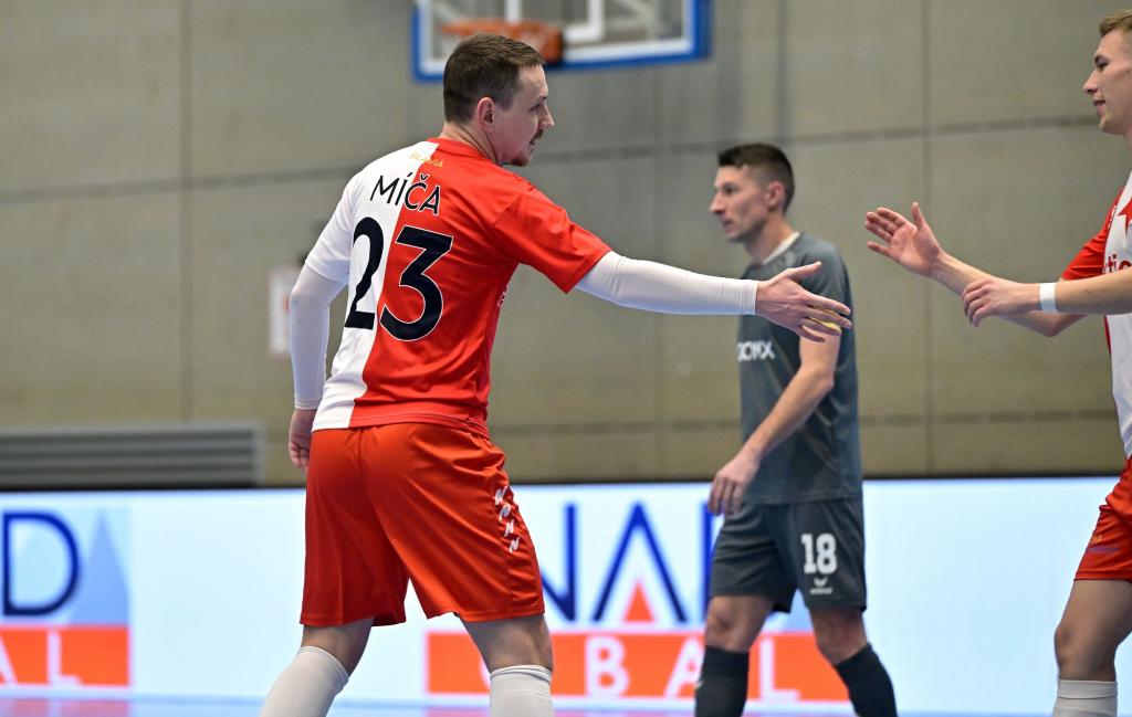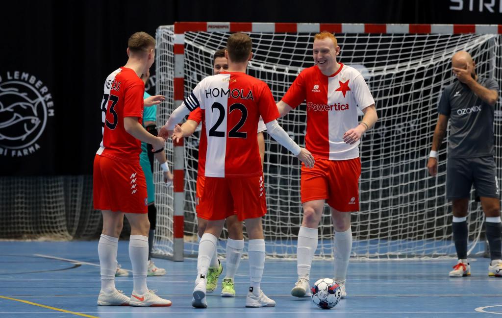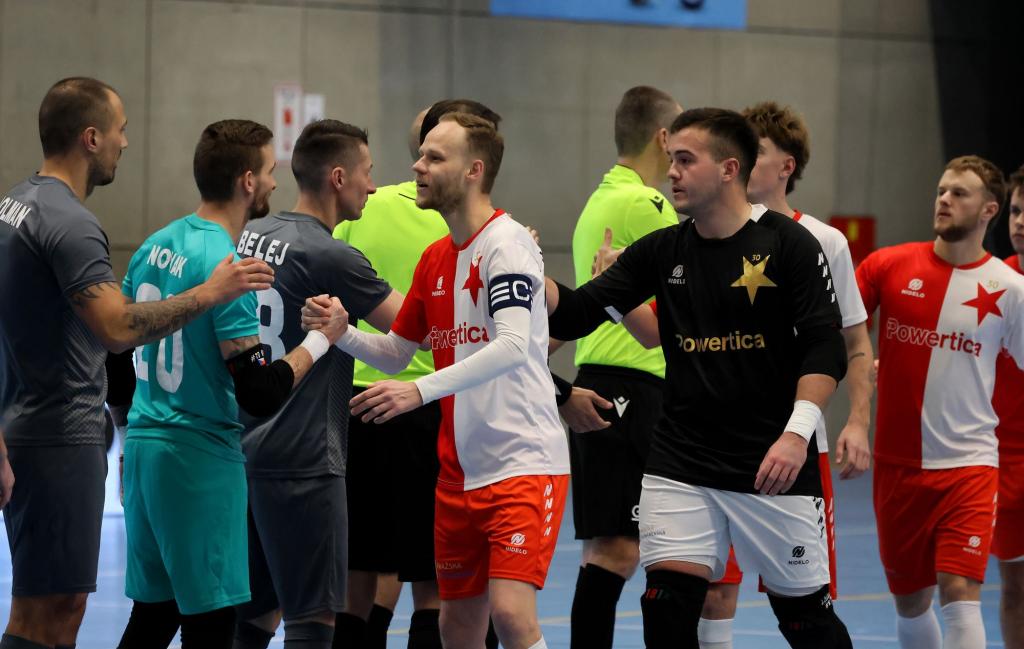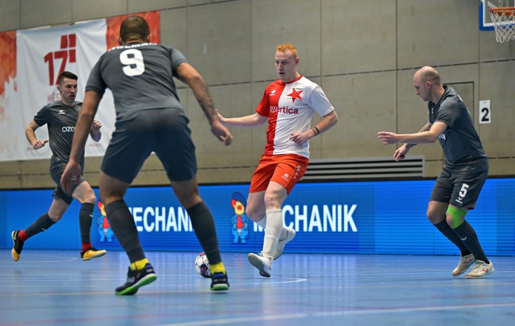 Výsledek po poločase byl stejný jako v prosincovém zápase v Kadani – Slavia vedla tři nula. Také v Praze musel předvést svoji dobrou formu reprezentační brankář Jan Žežulka. Hosty držel svými zákroky ve hře jeho protějšek Radek Novák. První branka padla už ve třetí minutě – Diaby přesnou přihrávkou připravil snadné zakončení Klabanovi – 1:0. V 11. minutě zvýšil parádní ránou do rohu branky kapitán Jan Homola – 2:0. Ve 13. minutě Diaby napálil z otočky břevno. V 18. minutě zvýšil na 3:0 po Kuchtově asistenci Nečas. Hosté stejně jako v prosinci nedokázali své šance využít. Po přestávce Jakub Lattish postupoval sám na Žežulku, ale nedokázal ho prostřelit. Stejně skončila i další obrovská šance Jaroslava Holmana. A tak Slavia přidala další údery. Ve 24. minutě nadvakrát dostal míč z pozice před brankou do sítě Diaby – premiérová branka ve Slavii – 4:0. V rychlém sledu přidali další dvě branky Klaban a Kuchta a bylo to 6:0. Ve 29. minutě po faulu na Diabyho proměnil penaltu Ondřej Míča – 7:0. A další branky padly hned v následujících dvou minutách – autory byli Kuchta a Havrda – 9:0. V 33. minutě Diaby získal míč při soupeřově power play a dovezl ho do prázdné branky – 10:0. Hosté pak prolomili nulu na svém kontě, když David Kursa prostřelil Olivera Ouhrabku, který naskočil do hry místo Žežulky – 10:1 pro Slavii. Příběh nedělního zápasu pak uzavřel Kuchta dotažením hattricku a Nečas zvýšením na 12:1. Hosté stihli ještě korigovat Podzimkem na konečných 12:2 pro domácí. Nic na tom už nezměnila ani tyčka, kterou trefil Zdeněk Sláma. Ohlasy po utkání: Tomáš Kuchta (Slavia): "Jsou to pro nás hodně důležité body, připravovali jsme se na oba zápasy poctivě, byly pro naši celou sezonu stěžejní. Jsem rád, že jsme to zvládli. Když jsem dal první gól, napadlo mě, že jsem nikdy nedal hattrick, zatímco ostatní už ho mají. Třetí gól jsem tam už napálil vší silou a odškrtl jsem si to. Není to ale tak důležité jako tři body, které jsme získali. Ve Vyškově nás čeká úplně jiný zápas, musíme se na nějco nejlépe připravit." Lukáš Krok (Inter FC Kadaň): "„V prvním poločase jsme byli Slavii rovnocenným soupeře,ale bohužel opět našemi individuálními chybami jsme dostali tři góly . Druhý poločas jsme totálně vyhořeli a bohužel si ze Slavie odvážíme debakl. Teď se musíme připravit na příští týden to bude zápas o všechno.” SK Slavia Praha – International FC Kadaň 12:2 (3:0) Branky: 3. Klaban (Diaby), 11. Homola, 18. Nečas (Kuchta), 24. Diaby (Klaban), 25. Klaban (Míča), 25. Kuchta (Havrda), 29. Míča (pen.), 30. Kuchta (Homola), 31. Havrda, 33. Diaby, 34. Kuchta (Homola), 36. Nečas (10 m kop) – 34. Kursa (Podzimek), 37. Podzimek (Dragomir) SK Slavia Praha: Jan Žežulka (Oliver Ouhrabka) – Jan Homola, Filip Havrda, Tomáš Kuchta, Yadali Diaby, Lukáš Nečas, Ondřej Míča, Filip Klaban, Radek Kibal, Tomáš Zíta, Lukáš Kuča, Zdeněk Sláma. Trenér: Zdeněk Sláma International Futsal Club Kadaň: Radek Novák – Jauib Kiliján, Jaroslav Holman, Michal Belej, Jan Podzimek, Jakub Lattisch, Jiří Duplinský, Jan Čihák, Milan Karpíšek, Lukáš Treml, David Kursa, Lukáš Dragomir, Zdeněk Uhlík. Trenér: Michal Belej Rozhodčí: Filip Nešněra, Ondřej Černý, David Lafek |