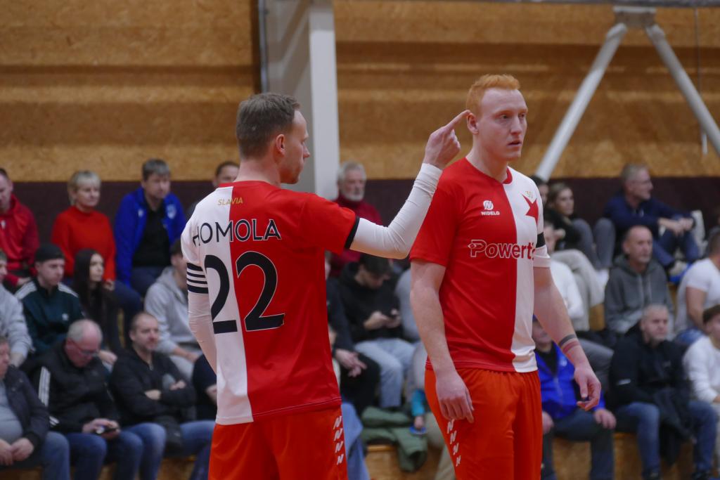 ![]() Slavia remizovala před reprezentační přestávkou 6:6 na palubovce Amoru Vyškov. Zápas měla výborně rozehraný, ještě deset minut před koncem vedla o tři branky, ale soupeře nedokázala dalšími góly dorazit. Při závěrečné power play sešívaní třikrát inkasovali, vyrovnávací branku vstřelil Matěj Žák tři vteřiny před koncem. Střelecky se dařilo Tomáši Kuchtovi, který vstřelil druhý hattrick v řadě, trefil se čtyřikrát. Jednou se prosadili Tomáš Trávníček a Filip Havrda. Před začátkem utkání uctili všichni zúčastnění minutou ticha památku tragicky zesnulého futsalisty Jana Lištvána, který ve své kariéře působil také v pražské Slavii. Do zápasu vstoupili lépe slávisté, už ve třetí minutě Lukáš Nečas šikovným obloučkem vytvořil skvělou střeleckou pozici Kuchtovi – 0:1. V 7. minutě důrazný Ondřej Míča získal pro Kuchtu další dobrou pozici – 0:2. Na začátku deváté minuty trefili domácí Ždánský a Nečas tyčku. Dramatický duel nabíral na obrátkách. V 11. minutě po kombinaci před hostující brankou Martiník snížil na 1:2. Ve 12. minutě Slavia našla odpověď a Kuchta uzavřel svůj hattrik – 1:3. Ve 14. minutě Matěj Žák na zadní tyči našel po standardce v souboji s Kuchtou prostor k zakončení a bylo to 2:3. Poslední slovo před přestávkou měla Slavia, v 19. minutě Slavia dovezla po kontru míč do sítě a Kuchta zvýšil na 4:2 pro hosty. Po přestávce ve 21. minutě navýšil náskok týmu z Edenu dorážkou Havrda – 5:2. Ve 28. minutě přišly klíčové momenty, Milan Svoboda podrazil Havrdu, který postupoval sám na prázdnou branku a dostal druhou žlutou a červenou kartu. Slávisté ale přesilovku k navýšení náskoku nevyužili, naopak hráči Amoru díky tvrdé Bezykově ráně krátce po skončení oslabení snížili na 3:5. Ve 30. minutě Tomáš Trávníček využil Homolovy přihrávky k uprávě skore na 6:3 pro svůj tým. Futsalová bitva nebyla ale ještě rozhodnutá. Deset minut před koncem nasadili domácí trenéři power play s Pavlem Krajčou v brankářském dresu. Sešívaní nedokázali několikrát zakončit přes celé hřiště a touhu domácích hráčů rozjásat zcela naplněnou halu tak nezastavili - odkrytou branku netrefil Nečas ani Žežulka. Čtyři minuty před koncem u zadní tyče nedokázal míč z kroku uklidit Žák do branky. Ale Amor nakonec na bod dosáhl. V posledních třech minutách se prosadili Tomaštík a Horváth, drama vyvrcholilo tři vteřiny před koncem, míč se po střele odrazil o břevna k Žákovi, který ho uklidil do sítě – 6:6. V domácí hale propukla obrovská euforie a oslavy zisku bodu. Slavia měla zápas až do stavu 6:3 pod kontrolou, Amor svými kombinacemi přehrávala, ale doplatila na neproměněné šance. Právě v této fázi a při soupeřově power play je nutné chyby domácích nekompromisně trestat se stejným důrazem jako za nerozhodného stavu - tak to dělají týmy v čele tabulky. Sešívaní se mohli dramatickému závěru vyhnout, nakonec berou z velmi náročného prostředí jenom bod. Je to určitě škoda. Komentáře po utkání: Jan Homola (kapitán Slavie): „Od začátku to byl z mého pohledu vítězný zápas, měli jsme spoustu šancí, dali jsme šest branek, bohužel jsme jich také spoustu dostali. Vyškov si touhou a vášní s obrovskou podporou fanoušků došel pro bod. My jsme dva body odevzdali, pokud nebudeme takové zápasy zvládat v hlavě, tak nemůžeme pomýšlet na to, že budeme v tabulce výš.“ Matěj Žák (Amor Vyškov): "Chtěli jsme na Slavii vletět, ale srazily nás v úvodu inkasované branky. Pak jsme se ale semkli a dokázali jsme v závěru získat bod. Pomohli jsme si s naší power play, která nám dnes výborně vyšla. Emoce to byly na konci neskutečné, když jsem po vyrovnávacím gólu běžel slavit, tak se celá hala houpala. Fanoušci nás skvěle podporovali, musím jim všem za jejich podporu poděkovat." SK Amor Vyškov – SK Slavia Praha 6:6 (2:4) Branky: 11. Martiník (Žák), 14. Žák (Pešta), 30. Bezyk, 38. Tomaštík (Žák), 39. Bezyk (Horváth), 40. Žák (Bezyk) – 3. Kuchta (Nečas), 7. Kuchta (Míča), 12. Kuchta (Nečas), 19. Kuchta (Kibal), 21. Havrda, 30. Trávníček (Homola), SK Amor Vyškov: Roman Vitásek - Pavel Krajča, Tomáš Horváth, Jiří Pešta, Milan Svoboda, Miroslav Tomaštík, Filip Ždánský, David Krška, Jan Martiník, Alexandr Bureš, Eduard Bezyk, Lukáš Macháček, Kelvin Campos Almeida, Matěj Žák. Trenér: Ladislav Štrublík SK Slavia Praha: Jan Žežulka - Zdeněk Sláma, Radek Kibal, Lukáš Nečas, Tomáš Zíta, Filip Havrda, Ondřej Míča, Jan Homola, Filip Klaban, Oliver Ouhrabka, Tomáš Kuchta, Yadali Diaby, Tomáš Trávníček. Trenér: Zdeněk Sláma. Rozhodčí: Slanina, Kabeláč, Kolář |