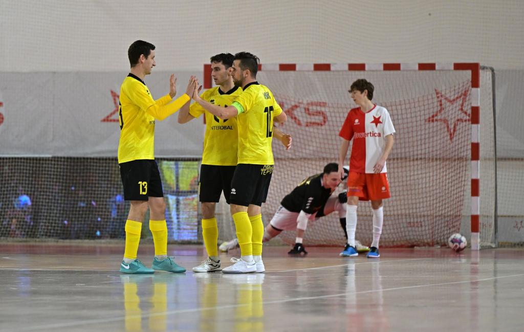 Komentáře po zápase: Jan Homola (Slavia): „Byl to moc pěkný zápas, školáci v hledišti tomu dodaly úžasný punc, právě tomuhle utkání to slušelo. Plzni jsme vzdorovali, dali jsme jim branky, což se minule nepovedlo, ale měli jsme jich do poločasu dát víc. S tak silným týmem musíte dát každou šanci, abychom uspěli. Ale i tak to nebylo špatné, napadali jsme je, tlačili jsme je, takhle ty zápasy mají vypadat. S tímhle musíme jít do zápasu v úterý, a i do těch dalších v příští sezoně.“ Francisco Mikuš (Interobal Plzeň): „Byl to těžký zápas, je škoda, že jsem nedal třetí branku, mohl to být nejrychlejší hattrick. Chtěl by ocenit výkon Slavie a to, že tu byla plná hala dětí, takové zápasy jsou pro každého jiné a žije se jimi víc. Děti poznaly futsal a třeba to některé přivede k našemu sportu. Akce to byla super.“ SK Slavia Praha - SK Interobal Plzeň 3:4 (1:1) Branky: 6. Homola (Havrda), 22. Homola (Nečas), 37. Sláma (Nečas) – 17. Knobloch (Jaroslav), 22. MKikuš (Vnuk), 22. Mikuš (Vnuk), 26. Künstner (Křivánek) SK Slavia Praha: Vondráček (Kirov, Ouhrabka) – Homola (K), Havrda, Troickis, Zita, Trávníček, Klaban F., Klaban J., Sláma, Diaby, Motyčka. Trenér: Sláma Interobal Plzeň: Žežulka (Lecjaks) – Vnuk (K), Holý, Křivánek, Künstner, Buchta, Mikus, Zápotocký Jiří, Zápotocký Jaroslav, Knobloch, Pečenka, Maur, Papež. Trenér: Kozár Rozhodčí: Čep, Černý, Pivoňka Diváků: 750 |