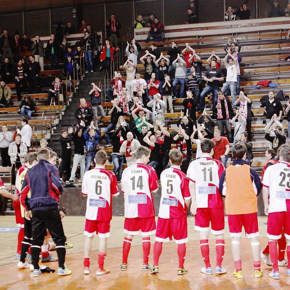 ![]() Zápasem roku a naším play-off této sezóny, bylo utkání předposledního kola Chance Futsal Ligy s Indossem Plzeň. Postavení v tabulce obou týmům velelo vyhrát, neboť se jednalo v podstatě o přímý souboj o záchranu v nejvyšší futsalové soutěži. Patronem utkání se stal Stanislav Vlček, který provedl s Ivo Ulichem také čestný výkop a poté z tribuny celý zápas sledoval. Veliké poděkování zaslouží fanoušci, kteří nenechali naše mužstvo na holičkách, famózně po celé utkání povzbuzovali a byli obrovským povzbuzením pro celý tým. V takovéto kulise snad ani nešlo prohrát. Celé utkání jsme i přes dramatickou zápletku na začátku druhého poločasu měli pod kontrolou, a sehráli pravděpodobně nejlepší zápas v této sezóně. Většinou nehodnotíme jednotlivce, výborné výkony Hrdiny, Filingera a Ulicha však tentokrát zmínit musíme. A je potřeba vyzdvihnout to, že síly našim hráčům do nohou vlévalo především povzbuzování tribuny, které v průběhu sezóny tolik chybělo. První poločas se nesl v duchu našeho náporu, sebevědomého výkonu a plné kontroly všeho, co se na palubovce událo. Hned po rozehrávce poprvé hledal Filinger mladého Vandase na hrotu, a hned hořelo. K podobné situaci došlo o pár vteřin později, a také stačilo málo, aby poprvé udeřilo. Z výkonu našeho mužstva bylo cítit, že nepřipouští žádné komplikace, a před slušně zaplněnou a fantasticky fandící tribunou chce dojít ke třem bodům a jistotě záchrany. Ani druhá čtveřice nechtěla zůstat pozadu. Míča si vyměnil míč s Hrdinou, který jej výborně našel za obranou, a plzeňáci vykopávali zoufale míč z prázdné branky, dobíhající Wojnar byl na místě o setinu vteřiny později. Aktivní Filinger mohl otevřít skóre po utěšené střele ze střední vzdálenosti. Další příležitost měl z trestného kopu, a hned poté, co opětovně vybojoval odražený míč, nezištně přihrál Vandasovi, ten však tváří v tvář plzeňskému gólmanovi neuspěl. Kopali jsme však roh a vydařil se nám nacvičený signál. Vandas sklepl zpět Filingerovi, a ten našel před prázdnou brankou Sopa, pro kterého nebyl problém míč dopravit do branky, 1:0. V další fázi se nám podařilo hosty ohrožovat především z křídelních prostor. Před Hajžmanem se sám objevil Wojnar, volil však raději přihrávku pod sebe, a následně Filinger, kterému se však nejzaměstnanějšího muže zápasu Hajžmana prostřelit nepodařilo. Alespoň prozatím. Ve výborné příležitosti se objevil Hrdina, který nejdřív prošel celým hřištěm, a jen málo chybělo, aby dorazil do sítě vlastní střelu. K druhému gólu nám nakonec dopomohl soupeř sám dvojím hraním s gólmanem. Nepřímý kop rozehrál Matějka, a Filinger napálil míč přesně k tyči, 2:0. Další gól mohl přidat Ulich, který si narazil míč s Hrdinou, proti Hajžmanovi však tak jako ještě několikrát v utkání neuspěl. Další tutovku vymyslel výborně hrající Martin Hrdina pro Matějku, ten však od zadní tyče ve skluzu poslal míč po šíři celé branky těsně mimo. Přesto jsme ještě do poločasu skóre navýšili. Filinger svojí přesnou přihrávkou našel Sopa, ten chytře navedl míč na střed, posunul Vandasovi, jehož střelu vyrazil Hajžman k dobíhajícímu Filingerovi, pro kterého nebyl problém trefit odkrytou bránu, 3:0. Poločasová přestávka byla zpestřena milou akcí, totiž poděkováním našemu úspěšnému mužstvu U-18, které se před nedávnou dobou stalo Vicemistrem České republiky. Hned šest hráčů (A.Hrdina, Čonka, Vandas, Žampa, Šimon, Pytloun) tohoto mužstva je již etablováno i v ligovém A týmu. Do druhého poločasu jsme "vlétli" tak, jak první skončil. Aktivně, sebevědomě, se snahou utkání definitivně rozhodnout. Čekala nás však dramatická zápletka. Nejprve ale přišlo několik dalších šancí na naší straně. Filinger vystihl soupeřovu rozehrávku rohu, vyslal do brejku Rotta, jenž do druhého dějství vystřídal v první čtveřici Sopa, ten posunul na zcela volného Vandase, ovšem Hajžman byl opět na místě. Z akce jsme nakonec vytěžili alespoň trestný kop z něhož se po stejné ose zrodila další gólovka. Filinger rozehrál na Rotta, ten z první nabil Vandasovi, který hlavou jen těsně minul. A tak nešťastně udeřilo na druhé straně. Po úniku a střele Kadlece podél autové čáry vyrazil Kučera míč přesně na nohu dobíhajícího Štrajta, 3:1. Plzeň ožila, a chvíli poté musel Kučera vytáhnout první vážný zákrok v utkání. Naši hru to však nijak nepoznamenalo, a dál jsme nebzpečně útočili. Hrdina výborně vyvezl míč, Ulich šel ze strany sám na Hajžmana a jen těsně minul. O chvíli později se akce opakovala. Opět Hrdina vymyslel podobnou akci, Ulich opět sám před Hajžmanem, a opět byl plzeňský gólman úspěšnější. Tentokrát však jen díky tomu, že porušil pravidla, a chytil míč rukou evidentně mimo pokutové území. Měla následovat červená karta a trestný kop. Rozhodčí si však situace nepovšimli, hru pustili, a z protiútoku Plzeň snížila na rozdíl jediné branky. Opět Štrajt se opřel do míče a jeho střela zapadla přesně k tyči, 3:2. Plzeň vycítila šanci a využila jí. Jednu nebezpečnou střelu ještě Kučera chytil, po jeho nepřesném výhozu se ale na půlce zmocnil míče Míka, a nechytatelnou dalekonosnou ranou trefil přesně šibenici, 3:3. Možná že se někdo na chvíli začal bát o výsledek. Sešívané mužstvo na hřišti ale ne. Vyrovnání přineslo ještě zvýšenější aktivitu, a před brankou Indossu se začala rodit jedna šance za druhou. Ulich byl v rozhodujícím okamžiku gólové střely postrčen, Filinger po Matějkově pasu nedokázal míč hlavou osamocen umístit přesn
