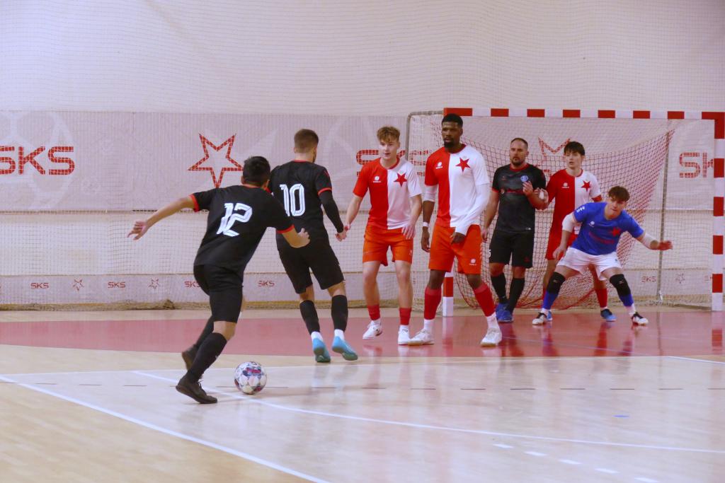 ![]() Slavia B v páteční dohrávce 12. kola 2. Futsal ligy západ v Edenu přehrála tým SAPA Praha 10:5. Sešívaní si rychlou kombinační hrou vypracovali v prvním poločase náskok, který po přestávce uhájili, i když soupeř dokázal snížit. Hattrick vstřelil Diaby, dvakrát se prosadil Tatumirak. V utkání začaly padat branky hned v úvodu, první třech minutách. Skóre otevřel Trávníček, ve druhé minutě pak přesnou střelou k tyči zakončil Diaby – 2:0. Bělčický ale dokázal rychle po kontru odpovědět – 2:1. Ve 4. minutě vymysleli efektivní kombinaci bratři v triku Trávníček a Zíta, druhý jmenovaný zvýšil na 3:1. V 9. minutě získal míč na vlastní polovině Diaby a protože jemu se míč snad ani nedá z futsalky sebrat, bylo to 4:1. Nadále se hrál útočný futsal, několik dobrých zásahů předvedl slávistický brankář Brejcha. V 17. minutě zvýšil aktivně hrající Tatumirak na 5:1. Do přestávky padly další dva góly, za SAPU snížil Němec, za domácí upravil po Kosinově pěkné akci Tatumirak – 6:2. V druhém poločase hosté vytasili power play a podařilo se jim stáhnout náskok domácích na 7:5. V tu chvíli si vzal trenér Ploc time-out a důrazně svým svěřencům domluvil. Další zdramatizování zabránil Diaby, který se protáhl po pravé straně a napálil míč do pravého horního rohu – 8:5. Po něm ještě přesně do prázdné branky namířili Rozman a Levický. Slavia zaslouženě vyhrála, ale uznání za bojovný výkon za každého stavu zaslouží i její soupeř. Komentář po utkání: David Ploc (SK Slavia Praha B): “V sérii čtyř po sobě jdoucích utkání v Edenu si připisujeme druhé vítězství. Kladně hodnotím vstup do utkání, kdy jsme hned v prvním střídání dvakrát skórovali. Postupem času a navyšování skóre došlo k prostřídání hráčů a k velkému snížení koncentrace z naší strany. Toho SAPA využila a z utkání udělala drama. Tři body bereme a stále tak vyvíjíme tlak na vedoucí Roudnici.” SK Slavia Praha B - FC Sapa Praha 10:5 Branky: 1. Trávníček (Diaby), 2. Diaby (Zíta), 4. Zíta (Trávníček), 9. Diaby, 17. Tatumirak (Motyčka), 17. Tatumirak (Kosina), 22. Kazbekov (Trávníček), 35. Diaby (Kazbekov), 39. Rozman, 40. Levický – 2. Bělčický (Jurčík), 17. Němec (Bělčický), 31. Bělčický, 32. T.A., 34. Němec (Jurčík) SK Slavia Praha B: Brejcha, Barták (NB) – J. Klaban (K), Kočovský, Levický, Motyčka, Rozman, Schütz, Zita, Trávníček, Kosina, Am. Kazbekov, Diaby, Tatumirak. Trenér: David Ploc FC Sapa Praha: Tran – Jurčík (K),Bělčický, D.A. Nguyen, H.X. Nguyen, T.A. Nguyen, Le Tuan, Němec Trenér: Bělčický Rozhodčí: Nagy, Černý |