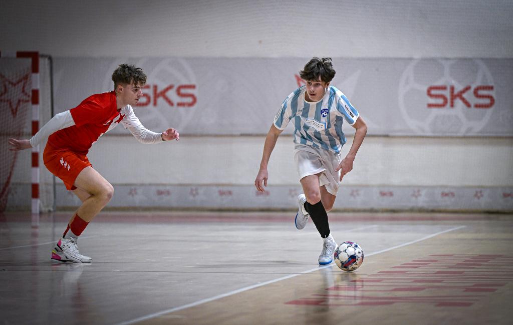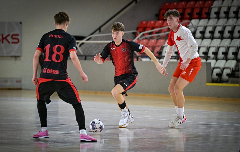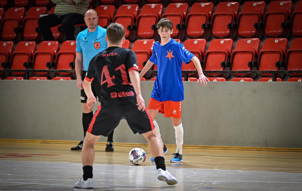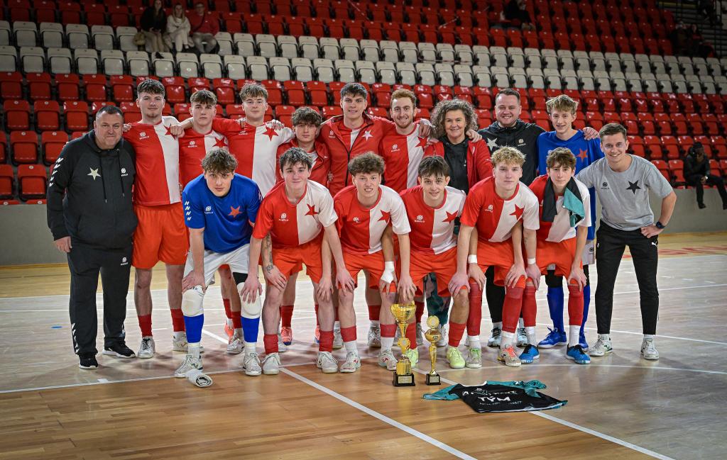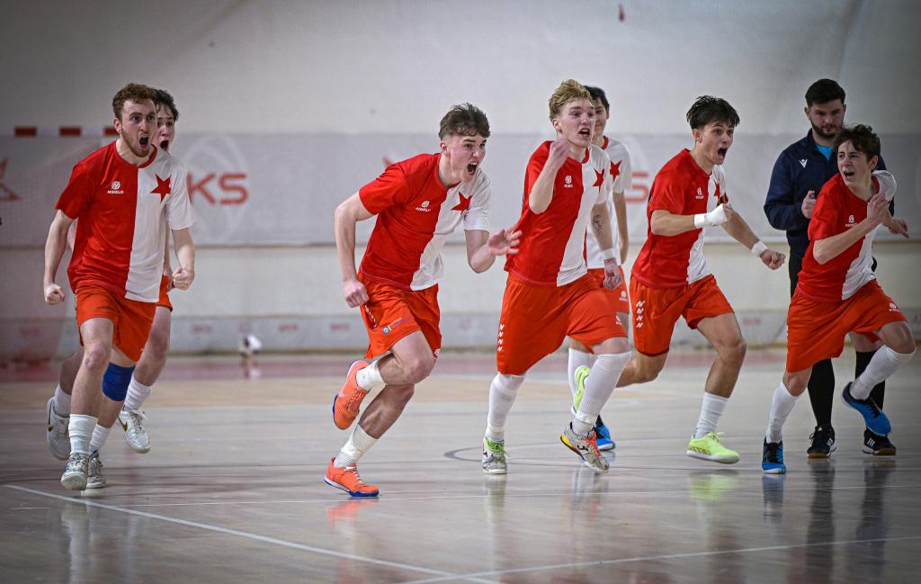 Juniorka v semifinále postoupila přes FTZS Liberec až na penaltový rozstřel. Slavia dotahovala skóre, neproměnila několik vyložených šancí a soupeř svoji efektivitou udělal zápas velice dramatickým. Někteří slávisté také ztratili koncentraci na hru a zaměřili svoji pozornost na výroky rozhodčích. Svojí nedisciplinovaností, byť některá rozhodnutí vyvolávala oprávněně emoce, riskovali úspěch celosezonní práce nejenom své, ale také realizačního týmu a celého klubu. Naštěstí v pravou chvíli dvěma góly zastavil negativní scénář kapitán Jakub Klaban. Liberec dostal zápas do penaltového rozstřelu díky proměnéné penaltě v závěru zápasu. V samotném rozstřelu ale prokázali lepší nervy sešívaní a postoupili. Dramatické, takticky vedené finále s Interobalem Plzeň nakonec rozhodl jediný gól, který vsítil z 10m přímého kopu Jakub Klaban. Spolu s ním byl do ALL STAR týmu turnaje nominován také Tomáš Zíta. Komentáře po turnaji: Jakub Klaban (kapitán Slavie U19): „Je to mix emocí, na turnaj jsem se strašně dlouho těšil a mám obrovskou radost z toho, že jsme to zvládli a dokázali jsme se dostat do celostátního finále. Závěr semifinále byl hodně dramatický, přiznám se, že už jsem byl ve stresu, že to nezvládneme. Po skončení zápasu byli kluci hodně naštvaní, snažil jsem se tým uklidnit, že teď na to musíme zapomenout a soustředit se na penalty. Ve finále nás čeká Chrudim, která nás vloni porazila o sedm branek, stále to těžce neseme a chceme jim to vrátit.“ David Ploc (trenér Slavie U19): „Bylo to psychicky náročné, už před turnajem jsme věděli, že budeme považovani za favority, ale nebude to snadné. Semifinále se nám příliš nepodařilo, samotný postup byl už na tenkém vlásku. O to větší je euforie z postupu a z toho, že jsme ve finále Plzeň dokázali potřetí porazit a že nám ani jednou nevstřelili branku.“ SK Slavia Praha – FTZS Liberec 4:4 (1:2) penalty 4:3, semifinále Final Eight západ Branky: 7. Kuta (Qualizza), 18. Conway (Kuta), 19. Stand (Kuta), 30. Tvercovici (pen.) – 8. Klaban (Kočovský), 9. Zíta (Schütz), 29. Klaban (10 m kop), 30. Klaban (Zíta) Penaltový rozstřel: proměnili Klaban, Rozman, Schütz, Zíta – Tvercovici, Stand, Lubor. Neproměnili: Kuta, Stoyka (oba Liberec) SK Slavia Praha - Barták (Kozák) – Jakub Klaban, Trávníček, Zíta, Schütz, Kočovský, Motyčka, Rozman, Holub, Kazbekov Amirlan, Ondřej Holub, Rajšner, Razesberger, Formáček. Trenér: David Ploc FTZS Liberec: Václavík (Kučera) – Conway, Kurc, Sedlák, Vrábel, Severa, Stand, Tvercovici, Stoyka, Hataš, Qualizza, Kuta, Lubor. Trenér: Filip Razák SK Slavia Praha – SK Interobal Plzeň 1:0 (1:0), finále Final Eight západ Branka: 13. Klaban (10m kop) SK Slavia Praha: Barták (Kozák) – Jakub Klaban, Trávníček, Zíta, Schütz, Kočovský, Motyčka, Rozman, Holub, Kazbekov Amirlan, Ondřej Holub, Rajšner, Razesberger, Formáček. SK Interobal Plzeň: Vicenda – Lemon, Pašek, Votípka, Popule, Rožánek Lukáš, Rožánek Matyáš, Jiřinec, Kolesa, Holý, Batista, Pečenka, Otec, Mottl. Trenér: Adam Forman |