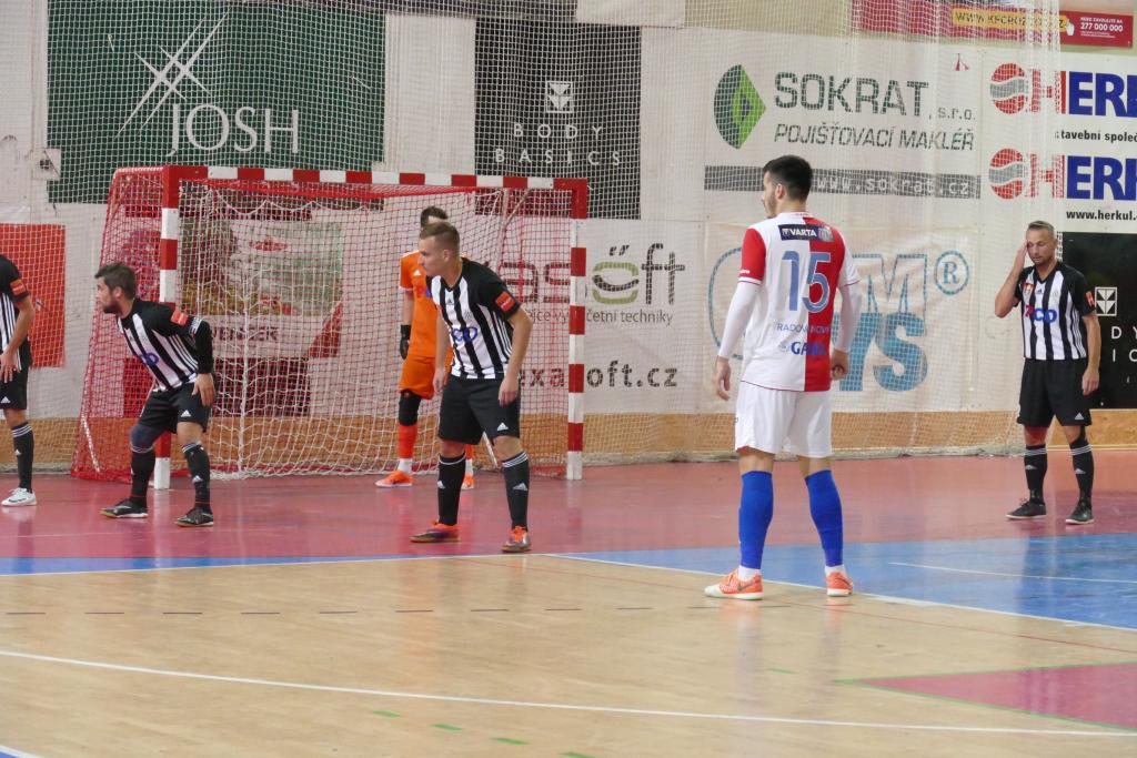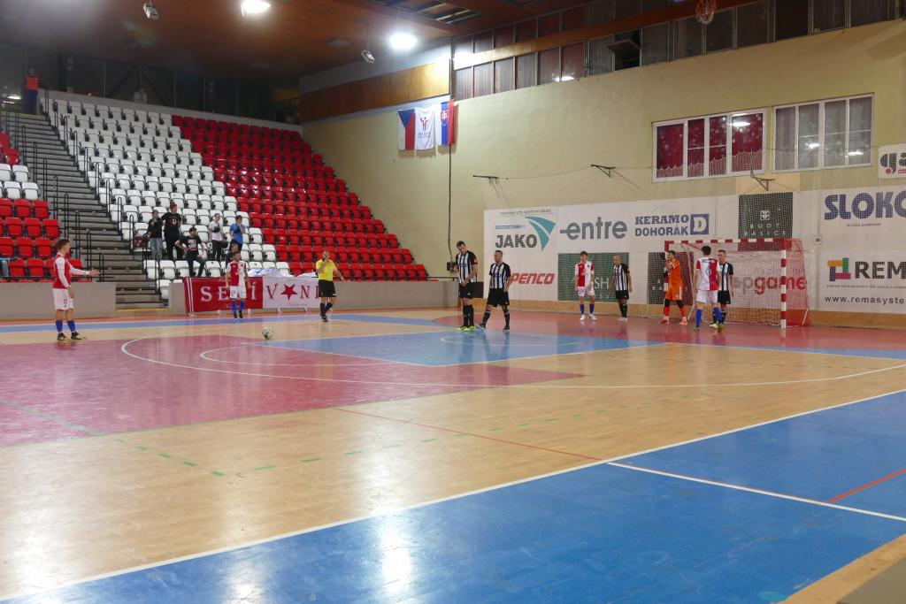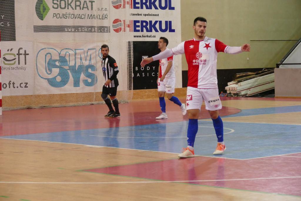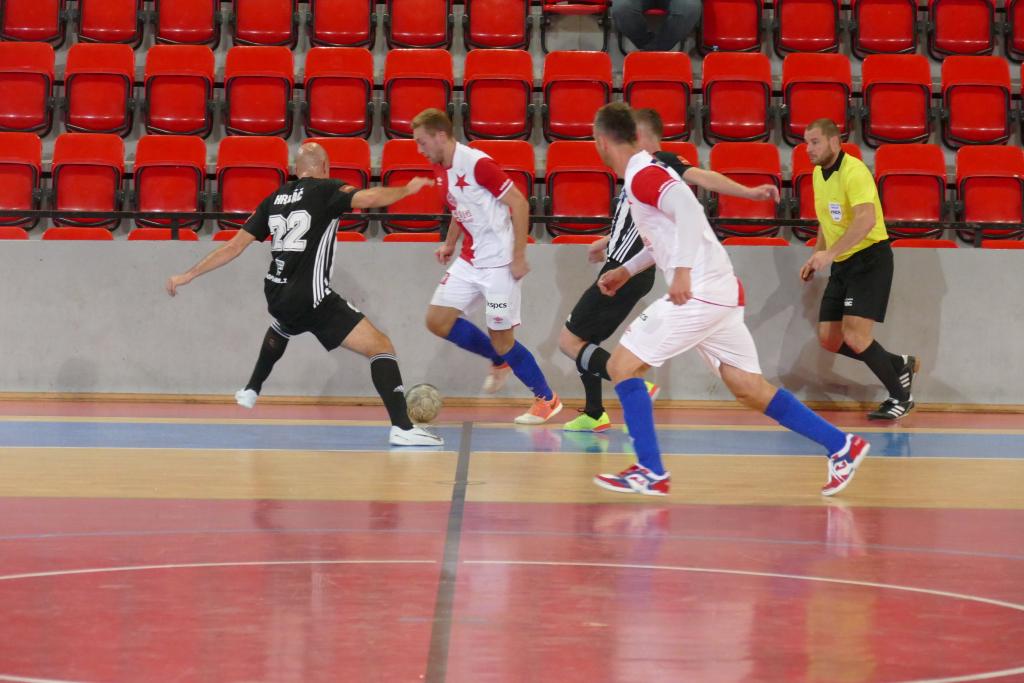 ![]() Fanoušci slávistických futsalistů si na pohárový zápas připravili krásné choreo, ve kterém připomněli poslední ligové utkání, ve kterém sešívaní nastříleli Českým Budějovicích sedmnáct branek. Další rekordní příděl se ale nekonal. Jihočeši odehráli úplně jiný zápas, slávisty dobře dostupovali, poctivě se vraceli do obrany a brankář Beránek podal výborný výkon. Dynamo šlo dokonce do vedení, když jeden z vydařených protiútoků dotáhl ve 13. minutě Petr Benát. Překonal uzdraveného brankáře Jana Žežulku, kterého do minulého utkání nepustil zánět spojivek. Slávisté vývoj utkání do poločasové přestávky otočili. Po Směřičkových přihrávkách se trefili Jan Křemen a Martin Brychta. Po přestávce nastoupil do branky Adam Vondráček, také on inkasoval branku po protiútoku, který zakončil znovu Benát. Pak ale slávisté zpřesnili svoji kombinaci a přidali rozhodující góly. Trefil se David Jošt, znovu Brychta a zblízka se prosadil také Marko Radovanovič, pro kterého se branka zdála přímo zakletá. Jan Křemen nakonec završil hattrick. V poslední minutě ještě zkorigoval závěrečné skóre na 7:3 hostující Jakub Hric. Do utkání nezasáhl Radim Záruba, který plnil reprezentační povinnosti. Komentáře po utkání: Jan Křemen (Slavia): „Hattrick jsem dal trochu se štěstím, ale větší radost bych měl, kdybychom předvedli lepší výkon, bylo to hrozné. Převládá tenhle pocit, v lize takhle nemůžeme hrát. Bylo to takové nezvyklé nastupovat po takové vysoké výhře proti stejnému soupeři. Chtěl bych poděkovat fanouškům za jejich choreo, ale když jsem to skóre 17:0 na něm viděl, bylo mi jasné, že to tentokrát bude jiné. Jejich podpory si moc vážíme!“ Radim Pouzar (České Budějovice): „Věděli jsme, jak kvalitní soupeř nás čeká, to jsme poznali už minulý týden. Musím náš tým pochválit, měli jsme tři hráče z béčka, ale disciplínou i charakterem jsme si ukázali, že můžeme uhrát přijatelný výsledek. 7:3 v dnešních podmínkách je prohra pro nás prohra s velkou ctí. Velký rozdíl oproti předchozímu utkání byl v disciplíně, v pohybu hráčů a zachytávání náběhů soupeře. Pár věcí jsme si vysvětlili, jak bychom chtěli bránit, a to jsme na sto procent splnili.“ SK Slavia Praha – Dynamo PCO České Budějovice 7:3 (2:1) Branky: 16. Křemen (Směřička), 17. Brychta (Směřička), 24. Jošt (Křemen), 25. Křemen (Jošt), 26. Brychta (Radovanovič), 27. Radovanovič (Brychta), 31. Křemen (Jošt) – 13. Benát (Peterek), 21. Benát, 40. Hric Slavia: Žežulka (21. Vondráček) – Brychta, Klíma, Směřička, Jošt, Sláma, Radovanovič, Homola, Hájek, Křemen Dynamo České Budějovice: Beránek – Pouzar, Benát, Peterek, Vejvar, Hric, Hrbáč, Pícha. |