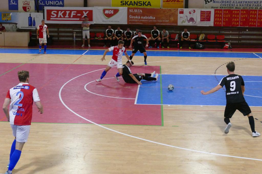 ![]() Futsalisté Slavie splnili roli favorita a svého sympaticky bojujícího druholigového soupeře Wizards Praha přehráli 6:0, když si nastřílené branky rozdělili rovnoměrně do obou poločasů. Stejně jako v zápase v Budějovicích otevřel skóre Daniel, do poločasu zakončili slávistické akce ještě Jošt a Brychta. Po přestávce dlouho žádná branka nepadla, nakonec hostujícího gólmana překonal svoji druhou brankou Jošt, po něm se trefil i Křemen. Jako poslední se do zápisu o utkání přihlásil brankou přes celé hřiště Leovski. Bylo to ve chvíli, kdy v závěru hráli Wizards power-play. Slavia do utkání nevstoupila úplně kompletní, chyběl kapitán Homola a slovenští reprezentanti Karpiak a Vaktor. Čisté konto vychytal mladý gólman Vondráček. Červenobílí tak vyhráli stejně jako vloni pražskou část Poháru SFČR a postoupili do celostátní části. Komentáře po utkání: David Jošt (Slavia): „Soupeř byl dobrý, věděli jsme, že jsou to šikovní futsalisté. Jejich výkony se mi líbily vždycky. Bylo znát, že chtěli hrát odzadu na brejky, mohli i skórovat, podržel nás tam gólman. Důležité bylo, že jsme měli zápas pod kontrolou, nepustili je do vedení a sami dávali branky. Musím soupeře i pochválit, bylo to stejně náročné jako některé zápasy v lize, myslím si, že by se tam určitě nikterak neztratili.“ Václav Ballada (trenér Wizards): „Na zápas jsme se stejně jako každý jiný pečlivě připravili, věděli jsme, že nás čeká rozjetá Slavie, které se v lize daří. Přizpůsobili jsme tomu taktiku, protože kdybychom to otevřeli, inkasovali bychom mnohem víc branek. Pro nás to byla skvělá příležitost si ukázat, kde je prostor ke zlepšení, kde děláme chyby. Odehráli jsme myslím slušný zápas, mrzí mě jen, že jsme nedali gól, pár dobrých šancí jsme k tomu měli.“ Slavia Praha – Wizards Praha 6:0 (3:0) Branky: 3. Daniel (Záruba), 6. Jošt (Daniel), 21. Brychta (Záruba), 39. Jošt (Křemen), 45. Křemen (Jošt), 50. Leovski Slavia: Vondráček – Brychta, Jošt, Leovski, Hruška, Sláma, Plíšek, Daniel, Záruba, Křemen Wizards: Bellada – Blažek, Bzonek, Imlauf, Koudelka, Tomek, Vácha, Šafář, Čerbačeský, Janoušek, Kokinda, Jeřábek |