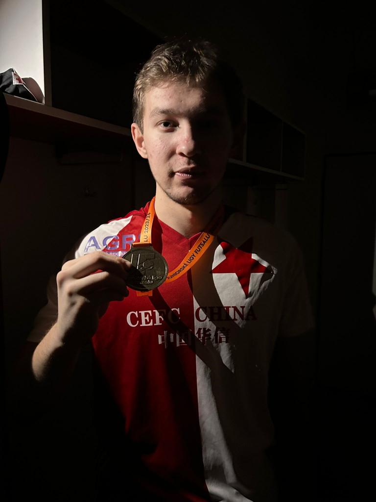 ![]() "Klukům jsem řekl před rozhodujícím střídáním, že dáme gól, ale moc mi to nevěřili," prozradil v našem rozhovoru Aldiyar Kazbekov. Střelec rozhodující branky ve finále Juniorské ligy se v Praze připravuje na studium trenérství na FTVS. Působil v juniorské reprezentaci Kazachstánu a jeho táta vede kazašský futsalový klub Ayat. Co ještě nám o sobě řekl si přečtěte v našem rozhovoru. Začněme tím nejhezčím okamžikem. Jaké to bylo vstřelit ve finále tak důležitý gól? Já jsem věděl, že ho dáme! Říkal jsem to všem třem svým spoluhráčům z první čtyřky, když jsme šli z lavičky do hry, že teď to rozhodneme. Trenér Homola nás pustil do hry a my jsme tam vletěli a po minutě dali branku. Nějak jsem vytušil, že dám gól i já. Kluci mi přišli trochu unavení, ale já jsem se tak necítil. Jak jste to vlastně oslavoval, tolik radosti tam zase nebylo? Už jsem neměl taky tolik sil, protože jsem dal všechnu energii do hry. Při oslavě gólu mi zbyly síly jen na lehký úsměv. Jak jste se na Final Four připravovali? Mluvil trenér Homola o tom, že je důležité hlavně zvládnout semifinále? Nehrálo rozhodující roli to, že vás postup nestál tolik energie? Já jsem věděl, že zvládnout první zápas proti Ústí bude to nejdůležitější! Naštěstí jsme dali rychle tři branky a pak to dotáhli do vítězného konce. A moje branka? My jsme dobře napadali s Kubou Krausem rozehrávku Rapidu, Kuba získal míč a udělal kličku brankáři. Byla tam možnost, že se míč odrazí ke mě, proto jsem tu akci dál pozorně sledoval. Taky se to potom stalo a pomohl jsem Kubovi dokončit jeho práci dorážkou. Jak jste prožíval samotný závěr, kdy jste se stali mistry? Byl jsem šťastný. Je to moje první evropská trofej. Byl jsem rád za celý tým, že jsme odvedli takovou neskutečnou práci za celou sezónu a dosáhli na takový výsledek. Myslím, že jsme si to jako tým zasloužili. Dopadlo to tak, jak jsem si představoval. Jaké jste měl pokyny od trenéra? Začnu tím, že jsem v Kazachstánu hrál na jiné pozici, hrál jsem pivota. Musel jsem si trochu zvyknout na to, kde mne jako hráče vidí trenér Jan Homola. Je to výborný trenér, odvádí tady skvělou práci. Všímá si každého důležitého detailu. Všechny rady, které jsem od něho dostal, byly pro mě prospěšné. Sám cítím, že mi jeho rady pomohly. Připravil pro nás vždy dobrou taktiku a dobře poskládal i celý tým. Kdo všechno doma sledoval přenos z finále? Všichni! Babičky, dědové, rodiče, bratři. Všichni se dívali. Posílali mi pozdravy už mezi zápasy a psali mi a ptali se, jak se cítím a přáli nám štěstí do finále. Právě od nich jsem dostal po finále první blahopřání. Prožívali to všichni, nejvíc určitě můj táta Kairat. Pracuje ve futsale a sleduje mne samozřejmě odmalička. Pochválil mne za to, že jsem na sebe vzal v rozhodující moment zodpovědnost a dal branku. Jak se to stalo, že tatínek má futsalový klub? V době, kdy se začínalo v Kazachstánu s futsalem, tak založil klub v našem městě, které není na poměry Kazachstánu zase tak velké. S postupem času se klub rozvíjel, stejně jako celý futsal v Kazachstánu. Díky managementu se nachází teď tam, kde je. Myslím si, že je hodně úspěšný. Předpokládám, že i v Praze sledujete kazašskou první ligu... Samozřejmě, že to pozorně sleduji, všechny zápasy našeho klubu Ayat a někdy také zápasy těch ostatních. Můžeme se ještě zeptat, jak jste se dostal vůbec do Slavie? Učím se tu česky, rád bych studoval na vysoké škole sportovní manamegent a fyzioterapii. Učím se všechny předměty, které budu potřebovat k přijímacím zkouškám. Hrál jsem odmalička futsal, proto jsem po příjezdu do Prahy hledal nějaký dobrý tým, kde bych mohl v kariéře pokračovat. Dostal jsem kontakt na Slavii a napsal jsem si s trenérem Homolou. Dostal jsem pozvánku na trénink. Jaké to bylo zapracovat se do nového týmu? Já jsem v Praze nejprve zkoušel hrát fotbal, ale tam se mi to upřímně nelíbilo. Ve futsalové Slavii se mi trénink okamžitě zalíbil, sice jsme tam byli zezačátku s mladšími hráči, ale trenér věděl přesně, jaká cvičení potřebujeme. Bylo to dost podobné tomu, na co jsem byl zvyklý v Kazachstánu. Už teď to mám tak, že bych chtěl trénovat jenom futsal a zlepšovat se v něm. Co se vám na futsale tak líbí? Já jsem žil v Kazachstánu v menším městě, kde žilo sto tisíc obyvatel. Od konce do konce jste ho přejeli za čtvrt hodiny. Nikdy tam nebyla třeba fotbalová mužstva. Proto jsem od sedmi let hrál futsal. Naplňuje mne to mnohem víc než fotbal. Vyhovuje mi to, že se dostanete častěji k míči, je tam více taktiky. Pohyby mi přijdou přirozenější, neběháte dlouhé úseky bez míče. Jaké cíle máte teď před sebou po zisku zlaté juniorské medaile? Když jsem sem přišel, tak mne vůbec nenapadlo, že tady hned získáme titul! Plány do budoucna? Chci na sobě pracovat, na svém potenciálu. Postupem času bych chtěl ukázat trenérům A týmu, že na to mám a že můžu být platným hráčem i pro áčko. Chodím se na první ligu dívat, první tři, možná čtyři týmy tu mají opravdu evropskou úroveň. Chrudim a Plzeň už v Evropě hrály, věřím, že se to jednou povede i Slavii. V Kazachstánu je úroveň asi mnohem výš... U nás je takových týmů, které by patřily ke špičce v Evropě, víc. Futsal je u nás na vzestupu, co se týká financí, ale i třeba i mládežnických akademií. Máme spoustu talentovaných hráčů. Hraje u nás taky mnoho zahraničních hráčů, nejenom z Brazílie, ale i z celé Evropy. Brazilce má v sestavě každý tým. Kvalita soutěže se stále zvedá, proto přicházejí stále kvalitnější cizinci. Jejich hra pomáhá rozví