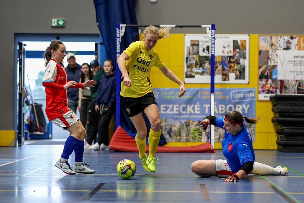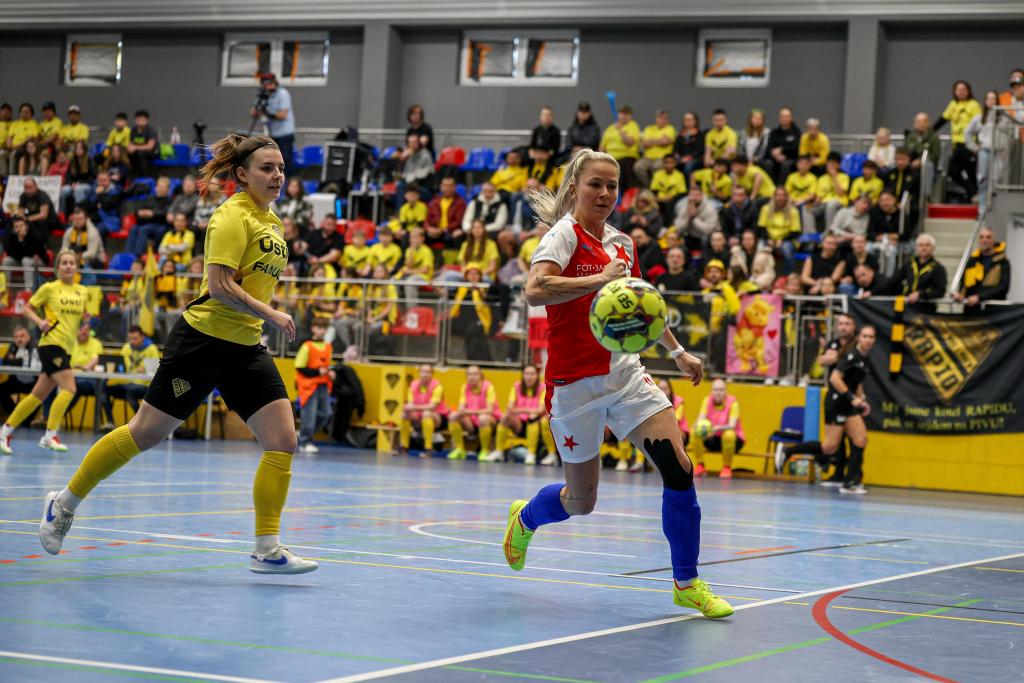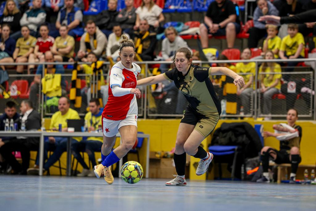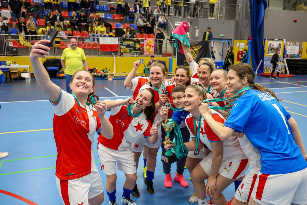 ![]() Futsalistky Slavie získaly na nedělním Final Four v pražských Kbelích třetí místo! Po prohře 1:5 v semifinále s Rapidem Ústí nad Labem v zápase o bronz třikrát dotáhly náskok Interobalu Plzeň a nakonec v závěru Petra Divišová rozhodla o vítězství 4:3. Alice Boučková, která vstřelila v zápase s Plzní dvě branky, byla nominována do All Star teamu turnaje. Všem hráčkám a realizačnímu týmu – Hedvice Kracmanové a Vratislavu Kracmanovi - srdečně blahopřejeme! Komentář po turnaji: Petra Divišová (Slavia): „Za třetí místo jsme šťastné, máme z něj velkou radost. Věděly jsme, z jakého postavení v tabulce jsme do Final Four šly. Pro nás už byl úspěch skončit mezi čtyřmi nejlepšími. To, že bereme bronz je nadstandardní úspěch. Můj rozhodující gól? Nebyla to zrovna povedená střela, ale na to se historie ptát nebude, hlavně, že to tam spadlo! Chtěla bych na dálku poděkovat Vráťovi Kracmanovi, je škoda, že si to tady nemohl užít s námi, veškeré díky za to, že medaili máme patří jemu a Hedvice, kteří se o tým starají a obětavě mu věnují svůj čas.“ Semifinále: Rapid Ústí nad Labem – SK Slavia Praha 5:1 (2:0) Branky: 2. Kozlíková (Fedorková), 7. Kozlíková (Vargová), 17. Beránková (Dvorská), 22. Dvorská (Kozlíková), 26. Kozlíková (Hrtánková) – 17. Divišová (Skálová) SK Rapid Ústí nad Labem: Vacíková (Kubíková) – Kozlíková, Zemjánková (C), Vargová, Fedorková, Beránková, Dvorská, Hrtánková, Červeňáková, Tulachová, Lišková, Dinh Thanhová. SK Slavia Praha: Dolejšová (Sochorová) – Pitulová, Lesiv, Skálová, Nová, Boučková, Folprechtová, Lébrová (C), Divišová, Klozová. Vedoucí: Hedvika Kracmanová Rozhodčí: Vévodová, Pivoňka, Gryc Diváků: 250 Zápas o 3. místo: SK Slavia Praha – SK Interobal Plzeň 4:3 (0:0) Branky: 11. Divišová (Boučková), 16. Boučková (Lébrová), 25. Boučková (Divišová), 29. Divišová (Skálová) – 5. vlastní Dolejšová, 11. Hyťhová (Štichová), 23. Jandová (Šimicová) SK Slavia Praha: Dolejšová (Sochorová) – Skálová, Lébrová (C), Pitulová, Folprechtová, Klozová, Divišová, Lesiv, Boučková, Nová. Vedoucí: Hedvika Kracmanová SK Interobal Plzeň: Štichová – Cardová, Beštová, Kabourková (C), Krejčová, Hyťhová, Němcová, Šimicová, Jandová, Bolfíková, Mandelíková, Krákorová. Vedoucí: Tereza Krejčová. Trenér: Karel Rozboud Rozhodčí: Nauš, Černý, Gryc Diváků: 250 Hrací doba: 2×15 min Sportovní hala: SH Praha – Kbely |